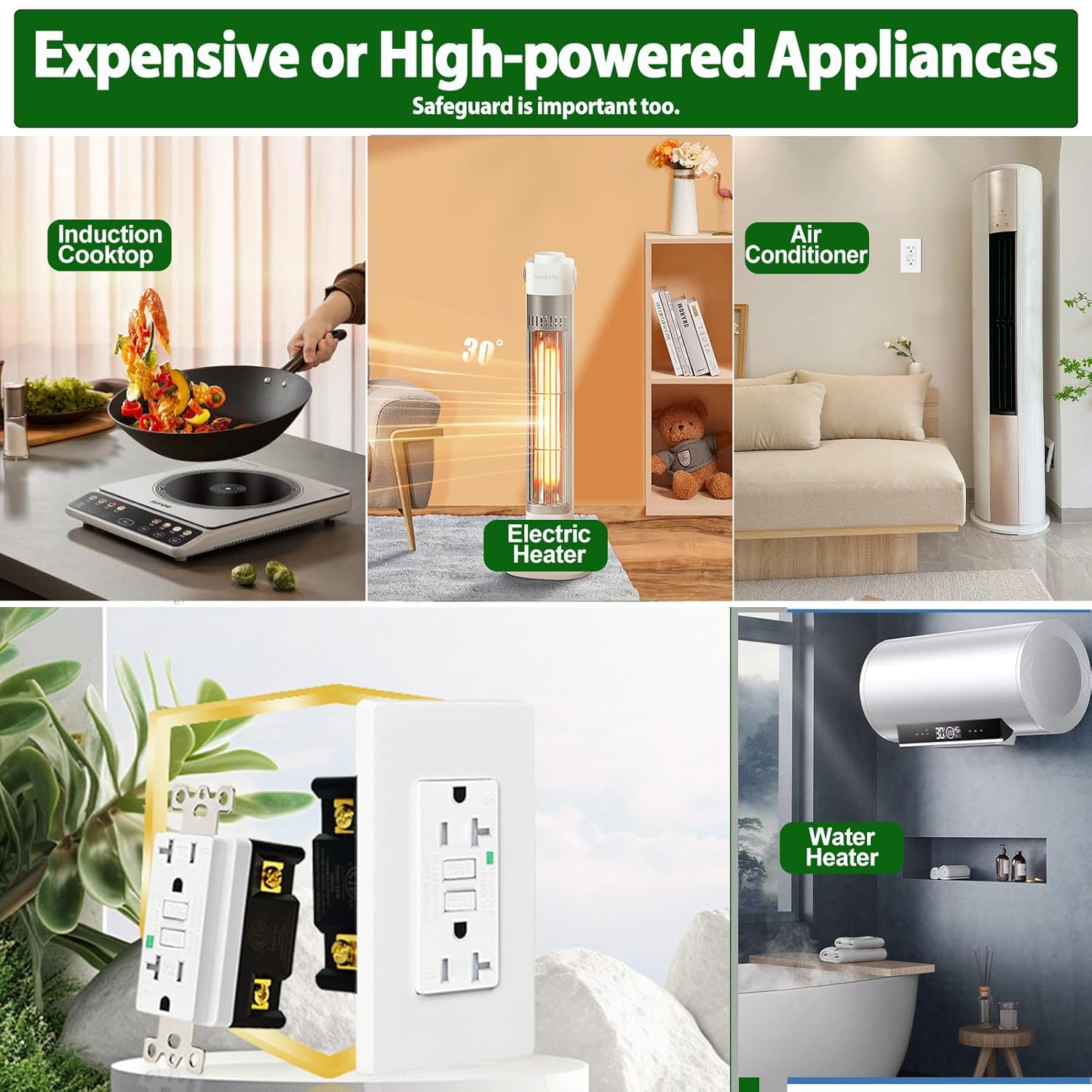 【Weather Resistant GFCI】The weather resistant GFCI can be used in a wide variety of indoor outdoor areas. It provides greater electrical safety by preventing moisture from entering the circuit and preventing electrical equipment and outlets from becoming damp or short-circuited.And provides UV resistance, preventing discoloration and aging.Safest 20a outlet choice for indoor outdoor, such as bathroom, gardens, patios, terraces, swimming pool areas, etc.
