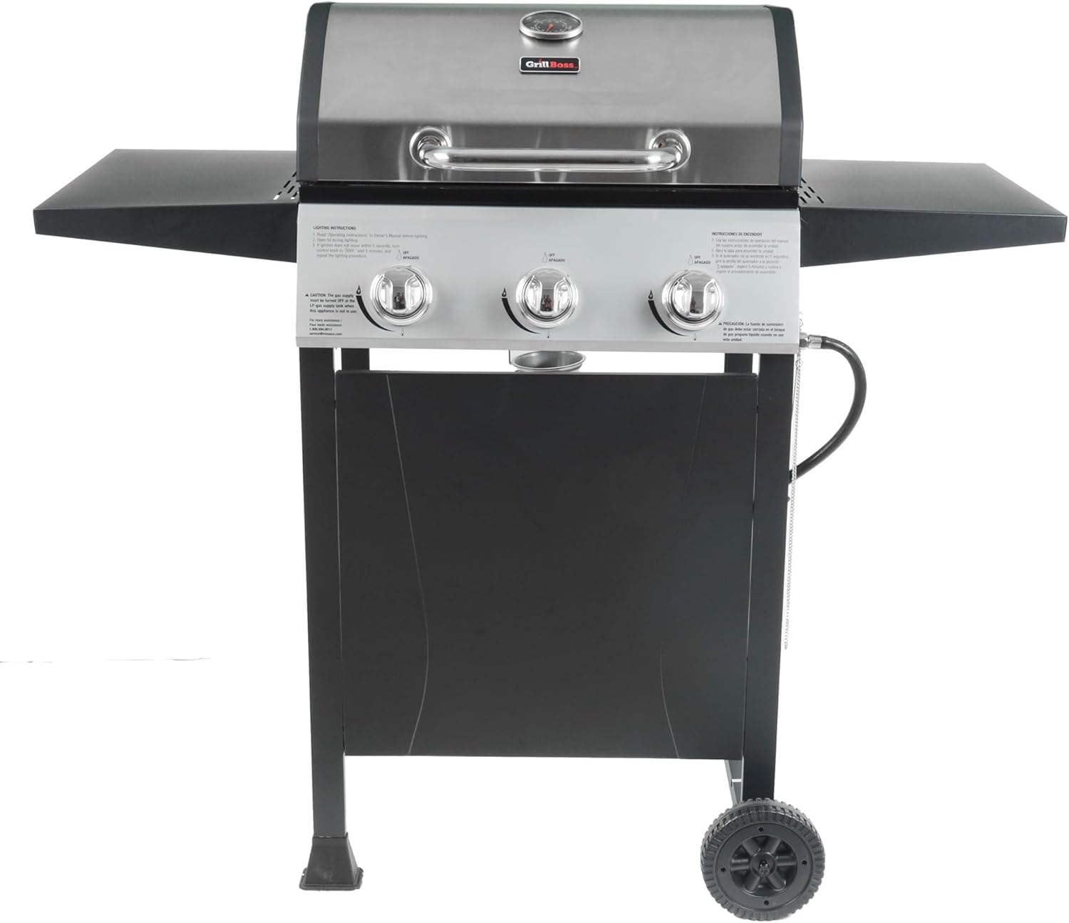 Grill Boss 3 Burner Propane Gas Grill, Portable BBQ w/Lid, Wheels & Side Shelves, Black – Grilling Accessories and Equipment for Camping, Tailgating, Outdoor Barbecue and Cooking