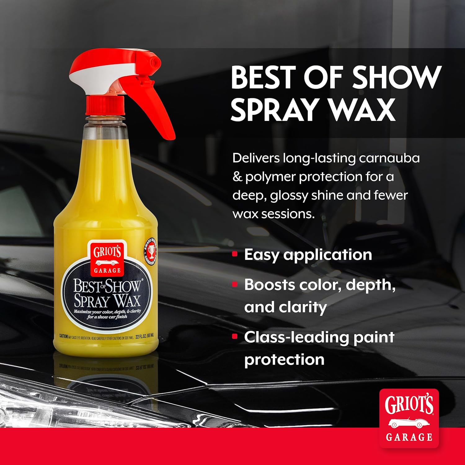 Griot’s Garage Best of Show Spray Wax for Car Detailing, Works on Paint Protection Films and Ceramic Coatings, Provides Long-Lasting Coverage Between Uses, 10968, 22oz