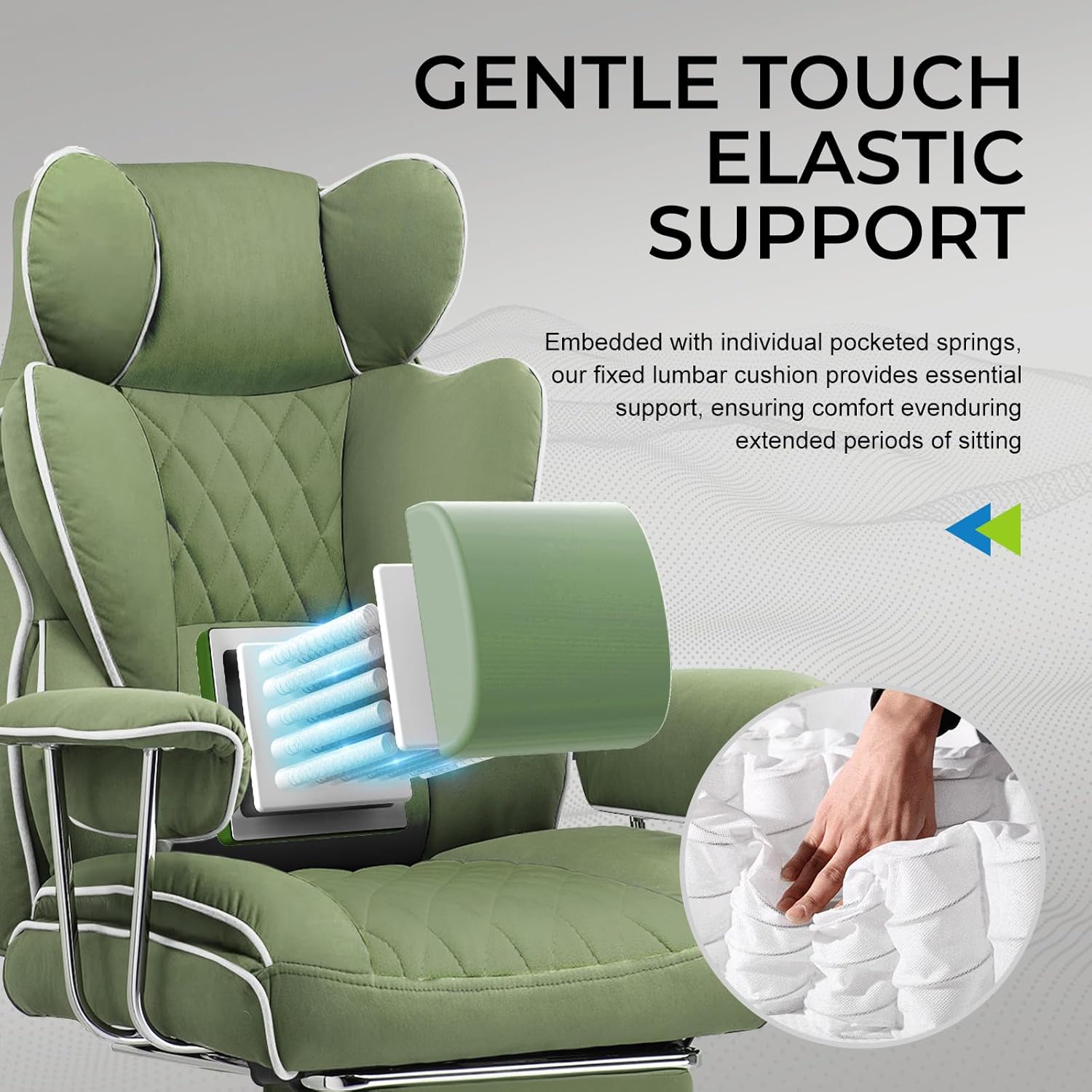 GTRACING Gaming Chair,Office Chair with Pocket Spring Lumbar Support, Ergonomic Comfortable Wide Office Desk Computer Chair with Outward Fixed Soft Armrests and Footrest (Fabric, Green)
