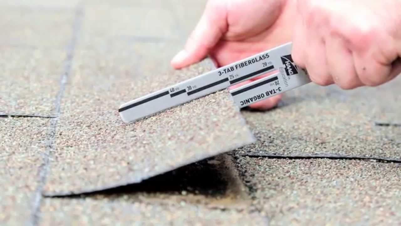 Measures the thickness of shingle and based on analyses correlates that thickness to warranty level