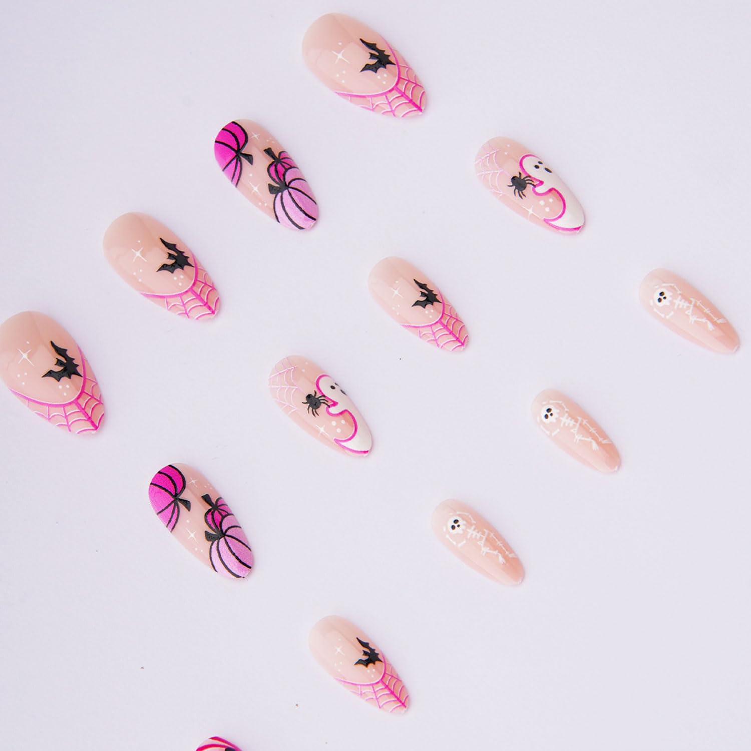 I stopped going to the nail salon this year and finally switched to press ons. Unfortunately this means no more fun designs from my nail tech, so Iâve been looking for cute holiday nail sets for the upcoming months. I was so excited to find this set because the pink ghosts are absolutely adorable!This set is great. They have a good range of sizes and itâs especially affordable compared to getting a set done. They are durable and easy to apply, too. Very happy with this set!