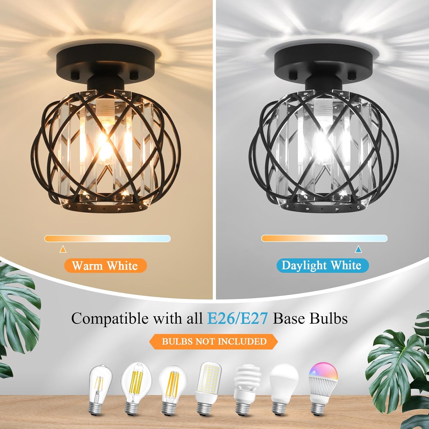 Elevate Your Home Decor: Our close to hallway ceiling lights feature a stunning crystal metal cage that adds a touch of elegance to any room. The chrome finish base complements the vintage farmhouse and industrial decor styles perfectly,adding a touch of glamour to your indoor ceiling fixtures