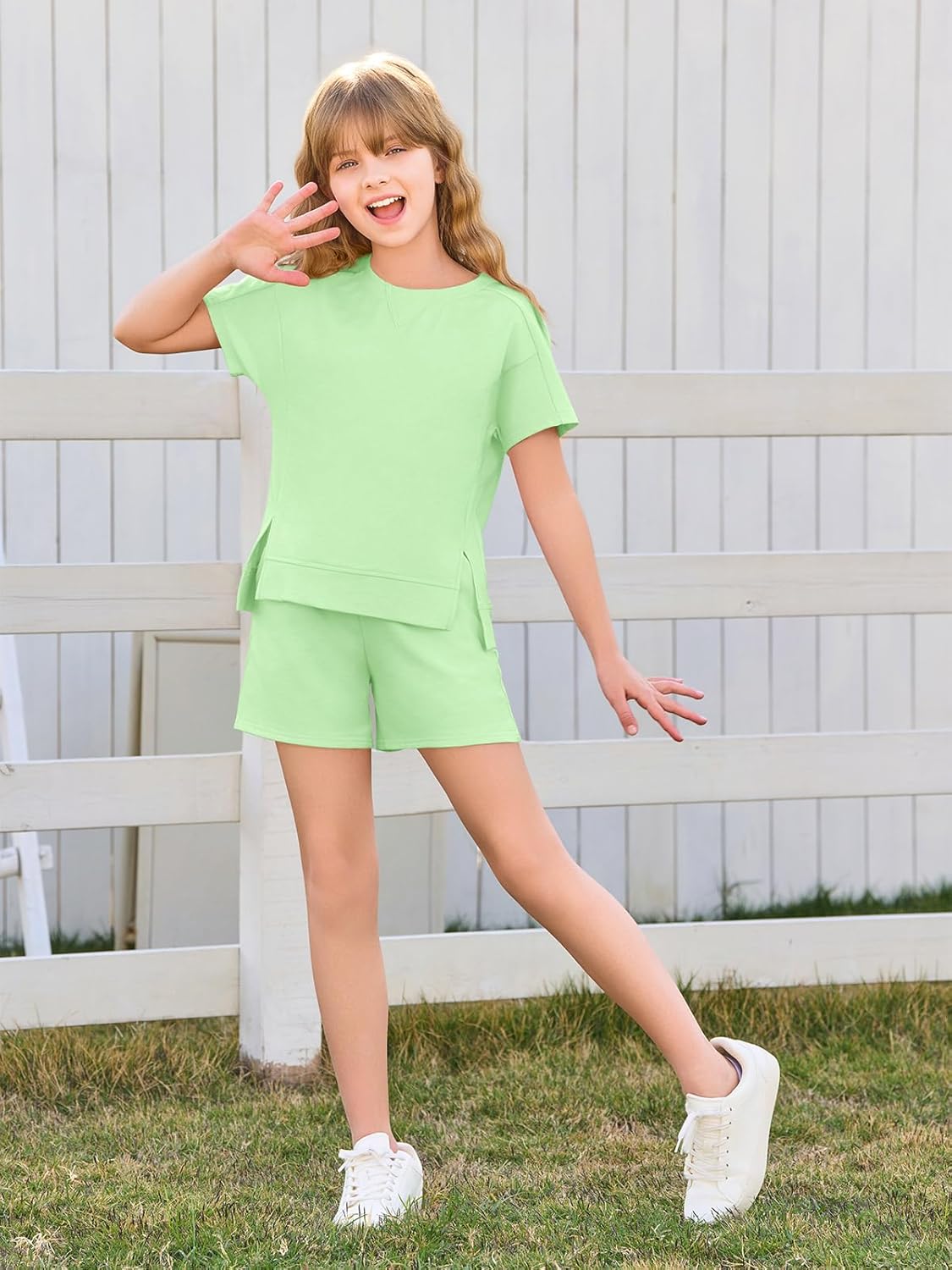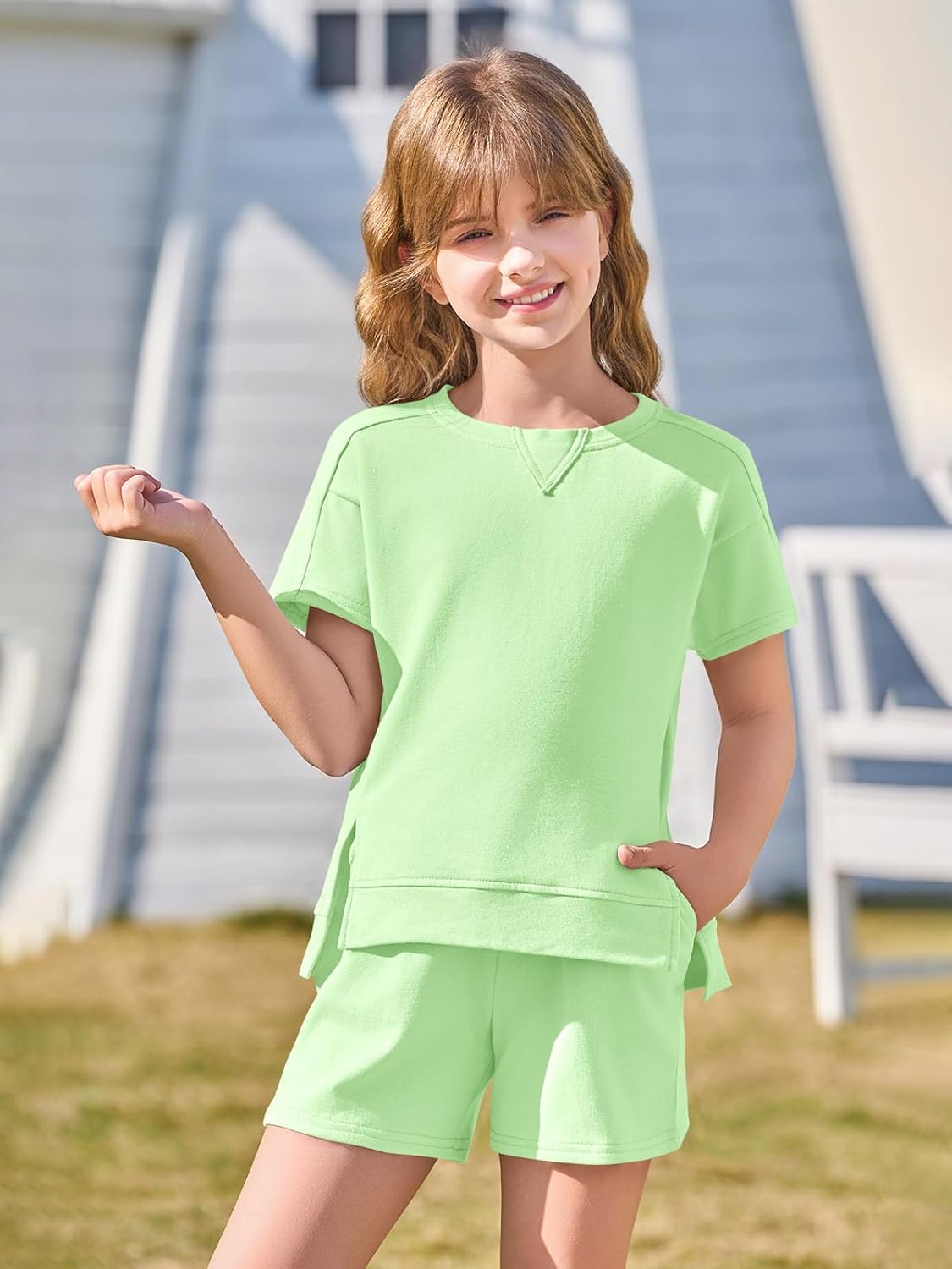 Girls Summer Outfits Casual Lounge Set Cap Sleeve T Shirt and Elastic Waist Shorts Clothing SetsGirls Summer Outfits Casual Lounge Set Cap Sleeve T Shirt and Elastic Waist Shorts Clothing Sets