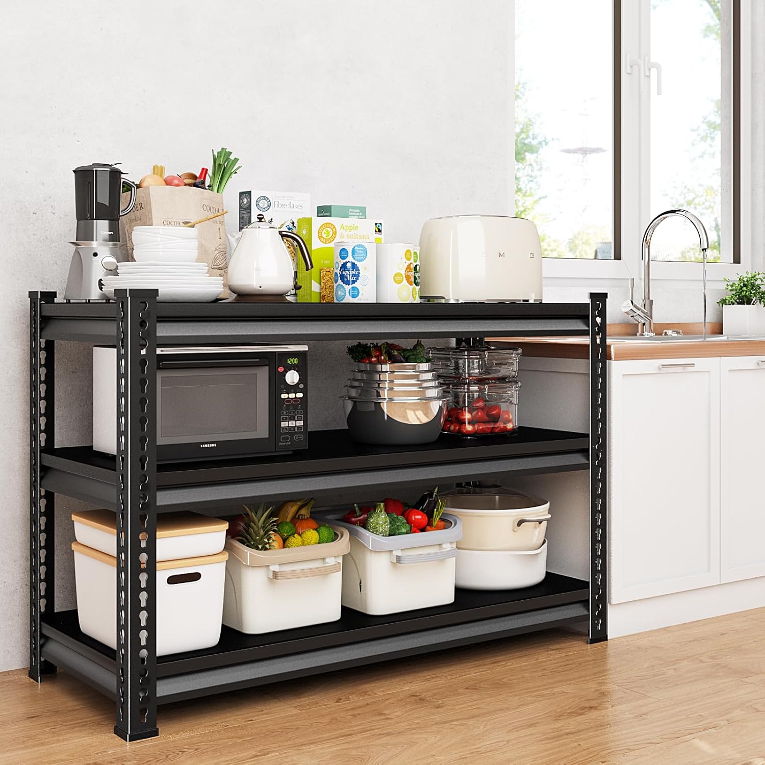 【Great Capacity Shelves 】 Made of all industrial grade metal, this 3-tier heavy-duty garage shelving holds 500 lbs each shelf and 1500 lbs in total, you’re free to pile on tools, supplies, or whatever you need in your garage or warehouse