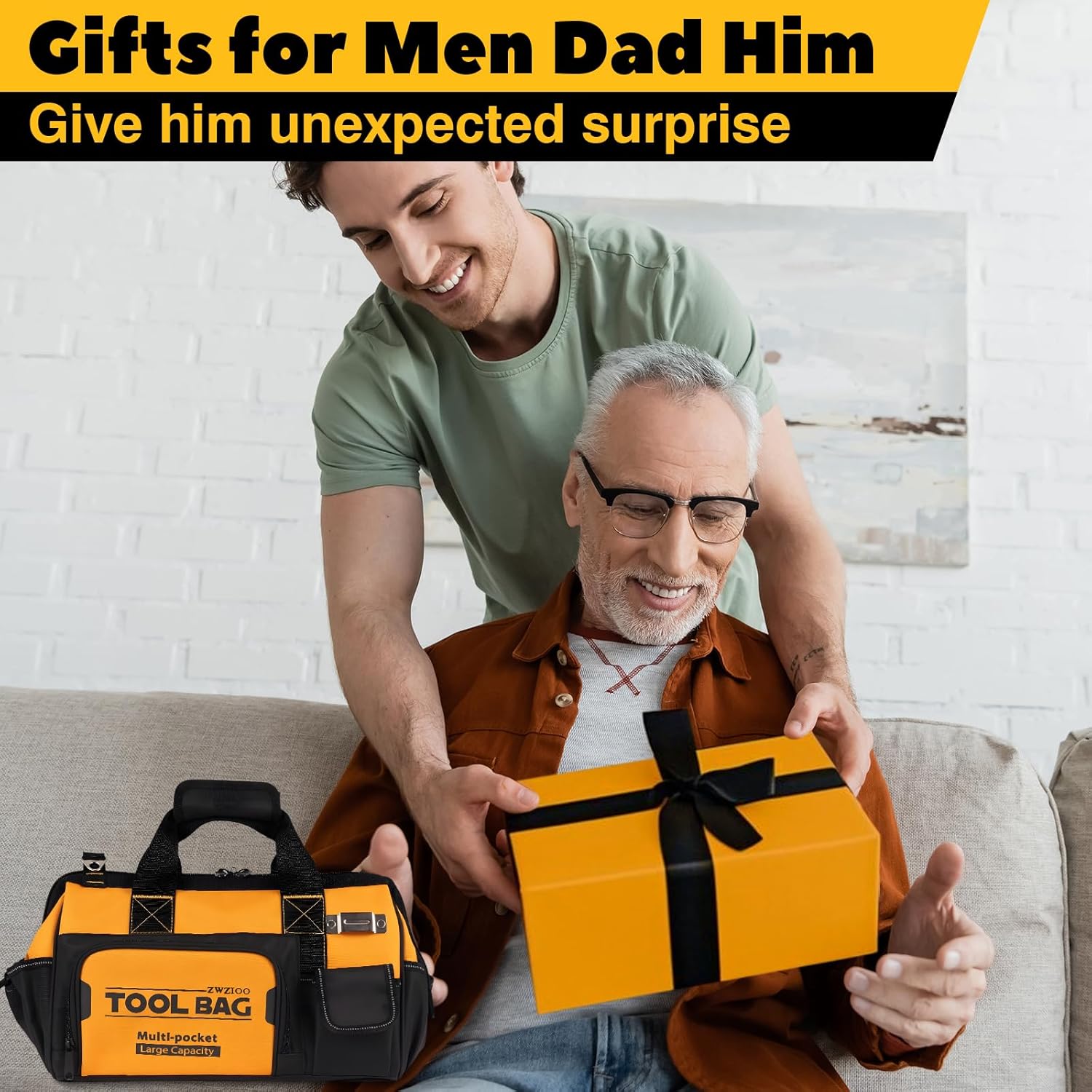 Made of high quality material, very durable and portable.Upgraded metal large zipper. Thickened base for extra strength.Wide mouth design for better access to tools. 19 multi-type storage pockets.More comfortable carrying handles and shoulder straps.It’s a great gift for a man.