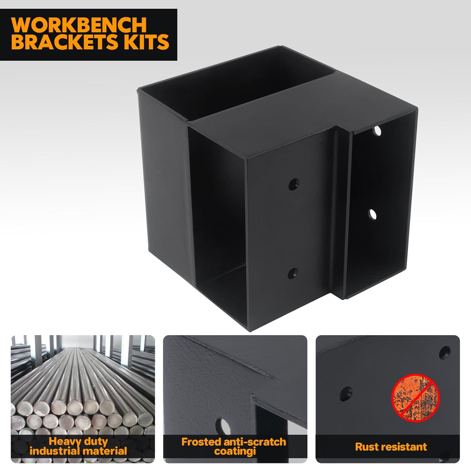 3-Way Corner Bracket: Our workbench brackets kit features pre-drilled holes, making it easy to build and support a workbench tailored to your needs. The kit includes 8 workbench brackets and 64 screws.