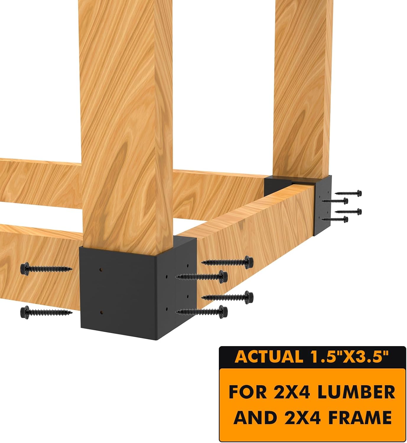 Easy To Install: These 3-way workbench corner brackets are perfect for 2×4 lumber (actual size: 1.5″x3.5″). Simply fix the lumber and tighten the screws, Please confirm the size of your wood before ordering.