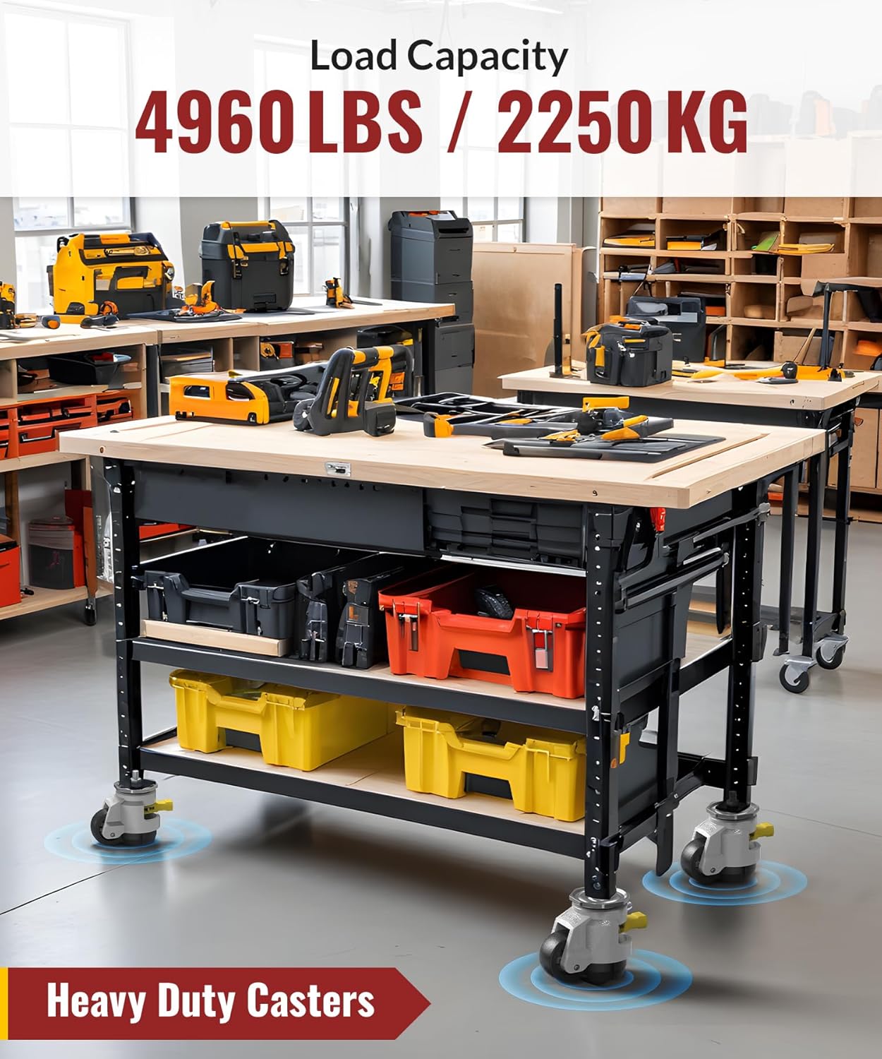 HIGH LOAD CAPACITY: Our set of 4 heavy-duty casters has a load capacity of 4960 lbs/2250 kg for a variety of equipment and workbenches.