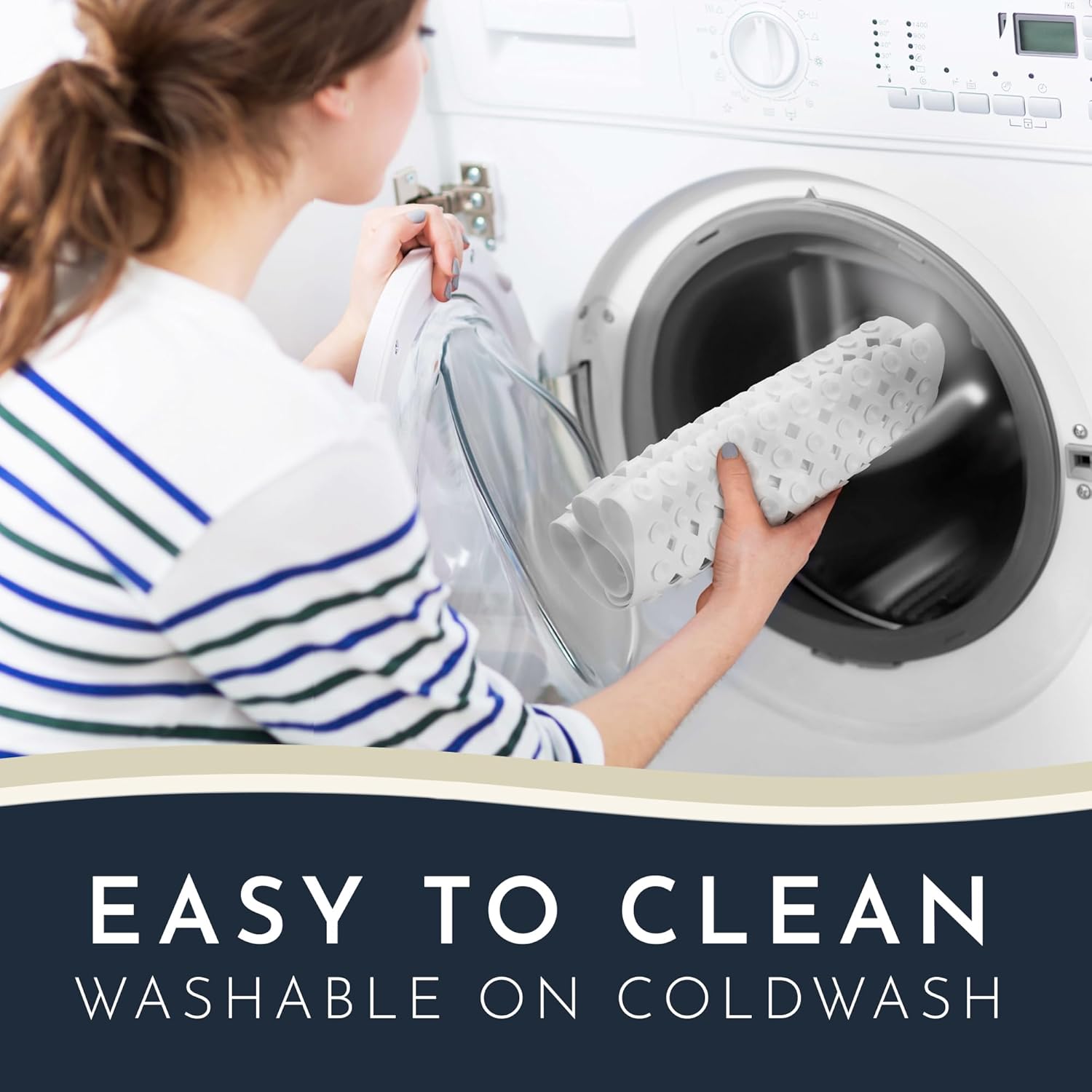 Mold & Mildew Resistent – Our antibacterial non slip shower mat for elderly is machine washable on cold wash. The bath matts for tub have extra large holes so the water can circulate & drain optimally – no matter where the drain of the non slip shower mats for inside shower is.