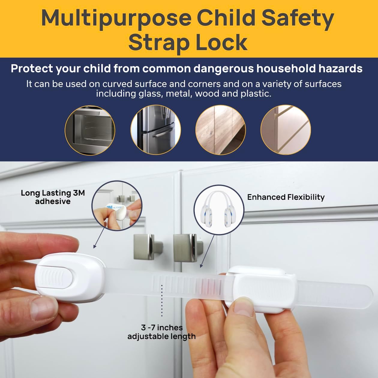 Quick & Easy Installation: With the tools provided, you can have your new baby safety gate installed in minutes. The multipurpose baby proofing cabinets safety strap locks come with long lasting 3M adhesive pads so that you can install them in a breeze, making the process effortless for you. Secure your house with this baby proofing comprehensive package and give your child and pets a safe place to play without any worries