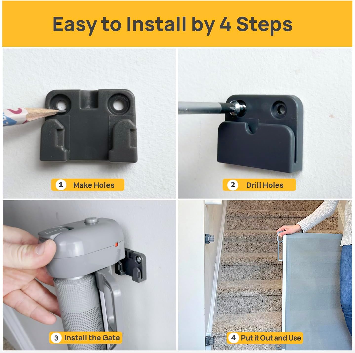 Complete Retractable Baby Gate Safety Package: Ensure your little explorer’s safety with the HomzAssist retractable baby gates package. This comprehensive package includes 1 retractable baby gate PLUS 4 FREE multipurpose child safety strap locks, providing complete protection against any unforeseen situations with our all-in-one solution for baby gate for stairs