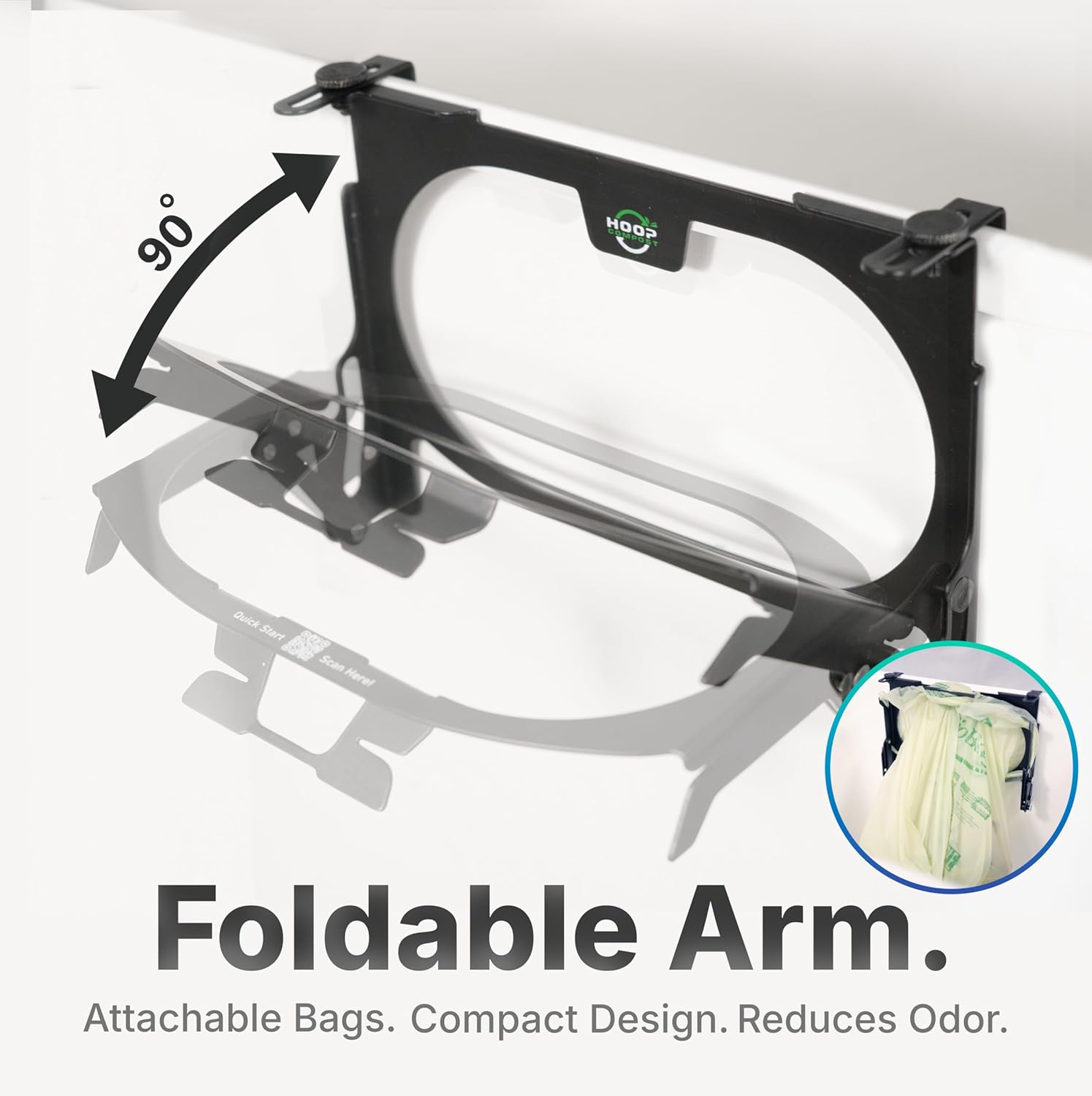 ✔ Innovative Liftable Arm for Odor Control: Eliminate odors with HOOP’s lift-up arm mechanism. When not in use, simply lift the arm to seal off the compost bag and trap unpleasant smells—keeping your kitchen smelling fresh while your trash stays out of sight.