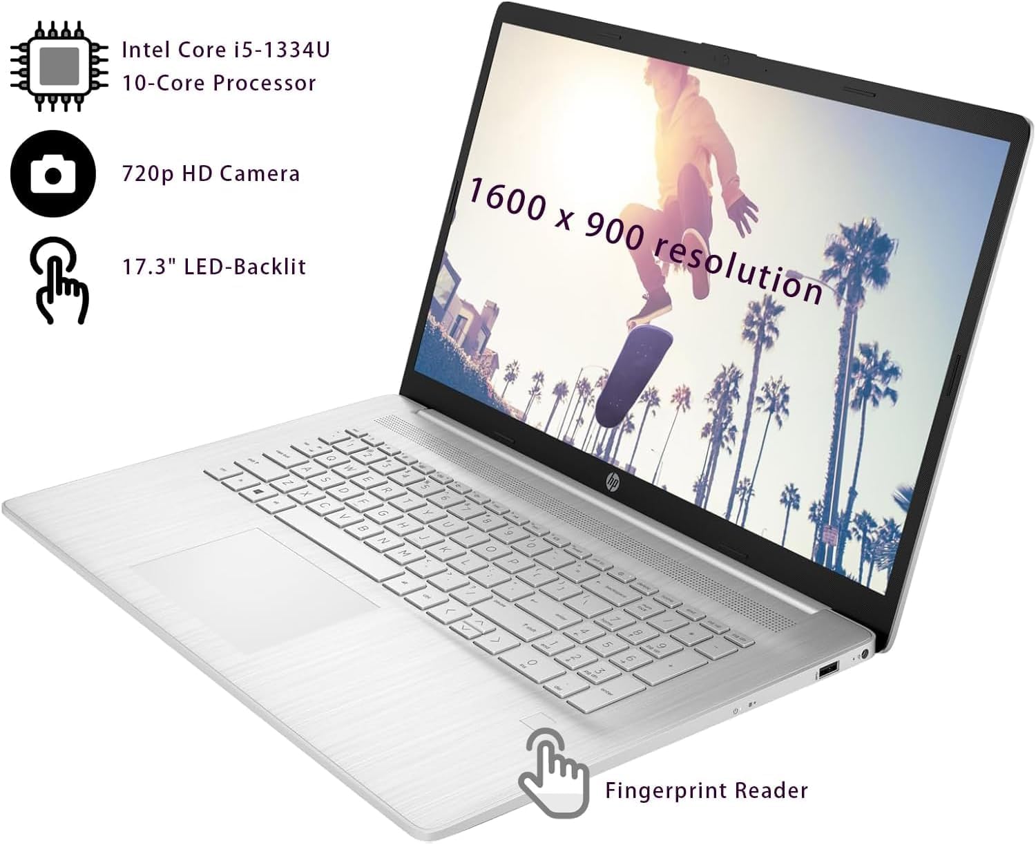HP 17.3 Inch Laptop with Lifetime Microsoft 365 Web | Backlit Keyboard, Fingerprint Reader | Intel Core i5-1334U (10 Cores, 4.6GHz) | 16GB RAM, 1TB SSD | Iris Xe Graphic | Win 11 Pro | WiFi 6