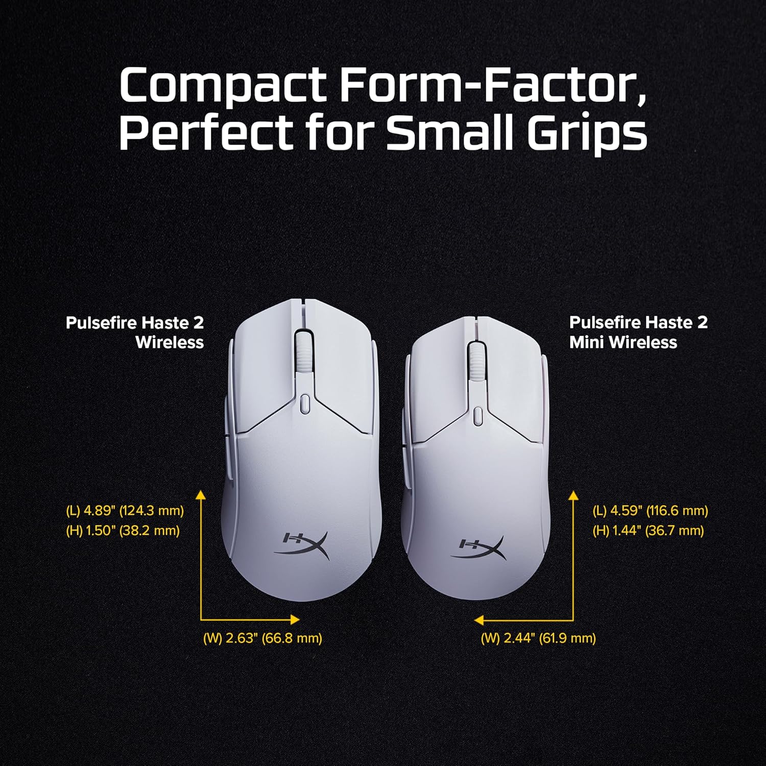 Mini and mighty! All the goodness of the Pulsefire Haste 2 Wireless, 1/6th less space! Featuring the same HyperX high-performance custom components, built for gamers with smaller hands, or who prefer smaller mice.