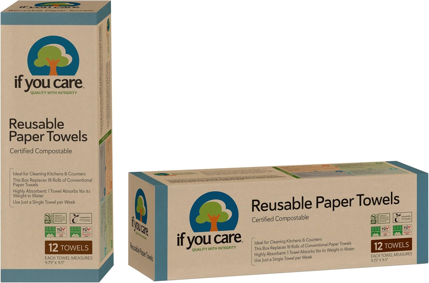 REUSABLE FOR 1 WEEK: Comes as a pack of 12 reusable and compostable sheets. One towel can be re-used for up to one week. This means that just one roll of If You Care Paper Towels replaces the equivalent of 18 rolls of conventional paper towels