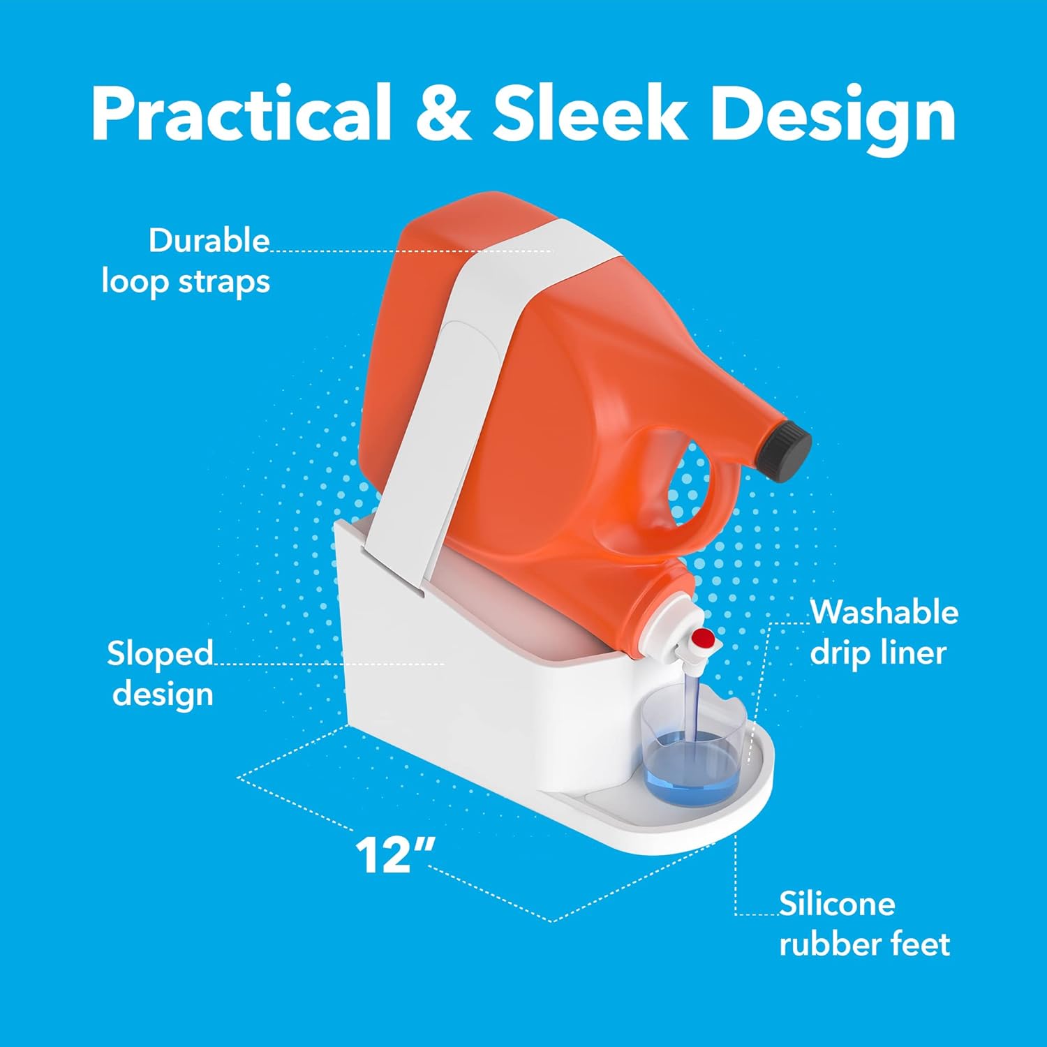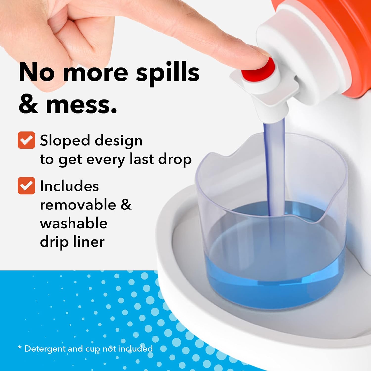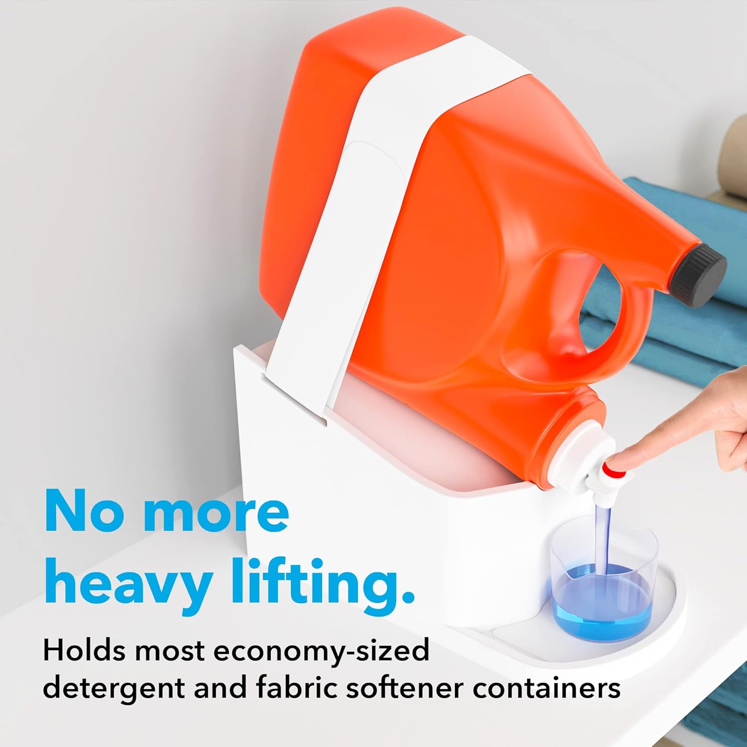 Minimize Drips & Spills: Our detergent stand for laundry room, featuring a built-in laundry detergent drip catcher and washable drip liner, prevents spills and eliminates the need to carry heavy bottles, making laundry tasks more efficient