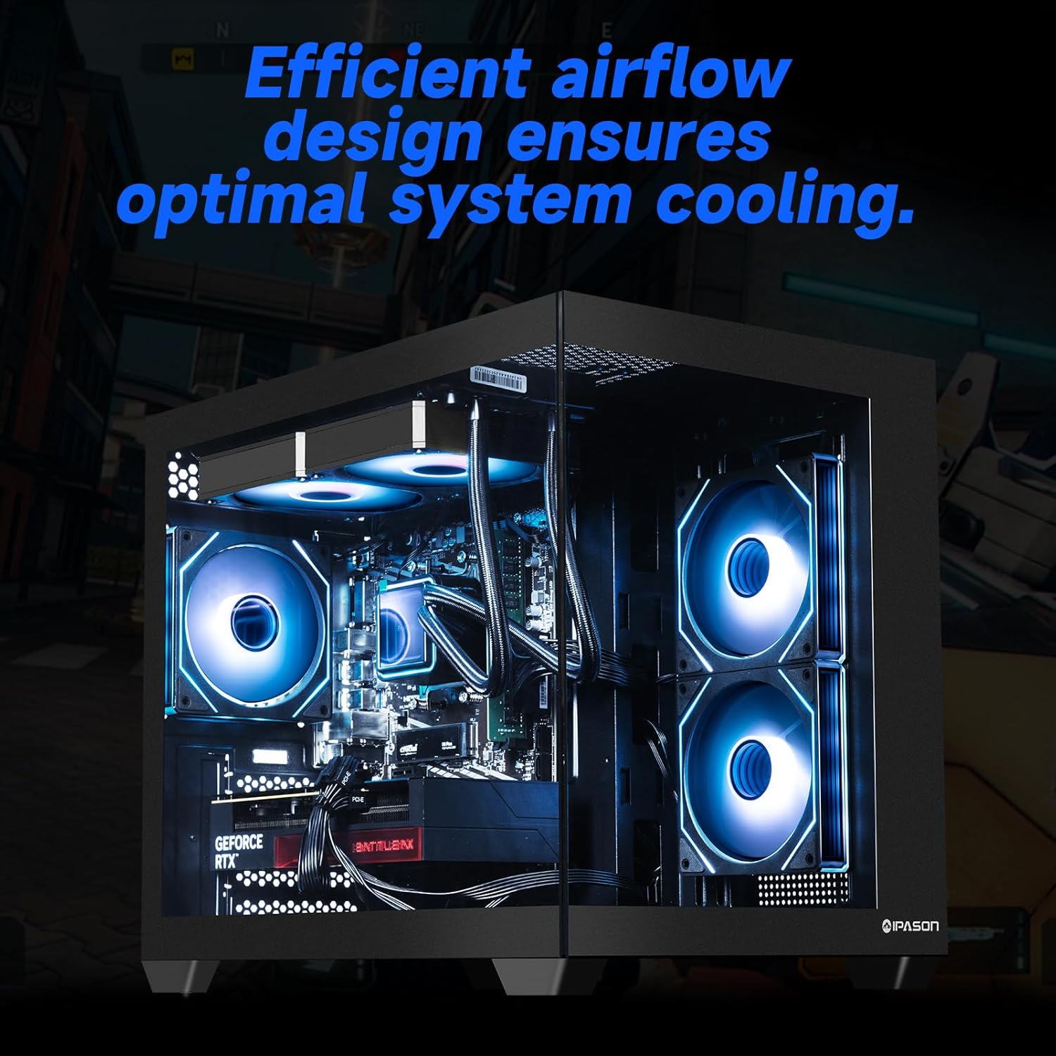 IPASON Gaming Desktop PC, Ryzen7 5700X, Geforce RTX 5060 8G, 16GB DDR4,1TB NVMe SSD,550W PSU, Liquid Cooler,Wi-Fi,ARGB Fans, Windows 11,Prebuilt Gaming Pc New Compute