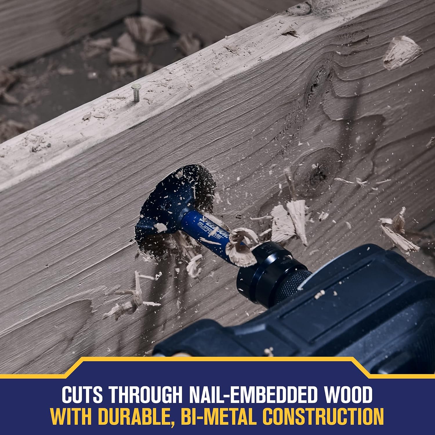 CHARGE THROUGH NAIL-EMBEDDED WOOD: High-speed steel cutting edge maintains its sharpness