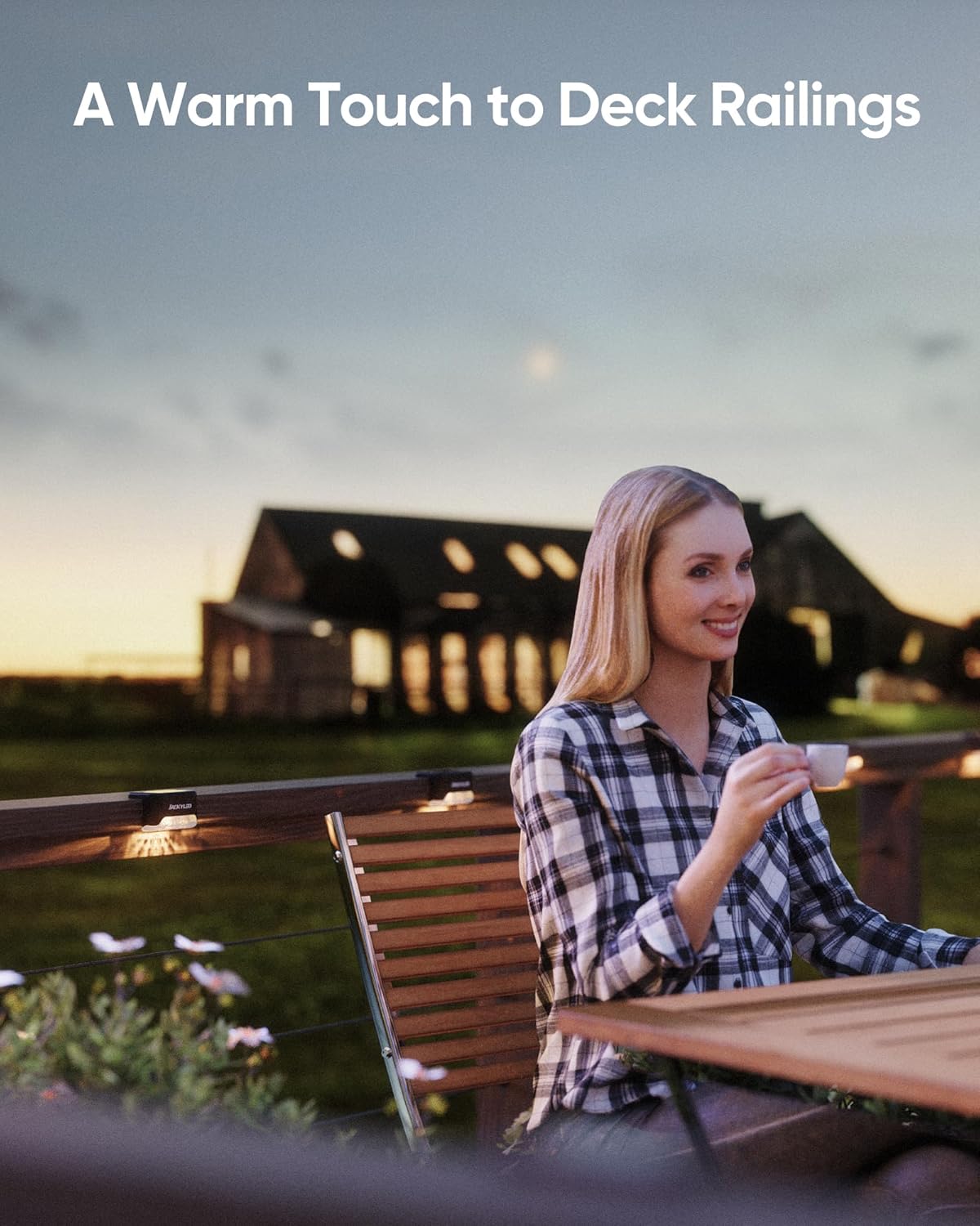 【2 Ways to Install】The solar lights for fence are super easy to mount on steps or railings, with mounting screws or adhesive tapes ( double-stick) that are both included. If you don’t want to drill holes in the deck rail, secure the solar step lights with adhesive tapes.