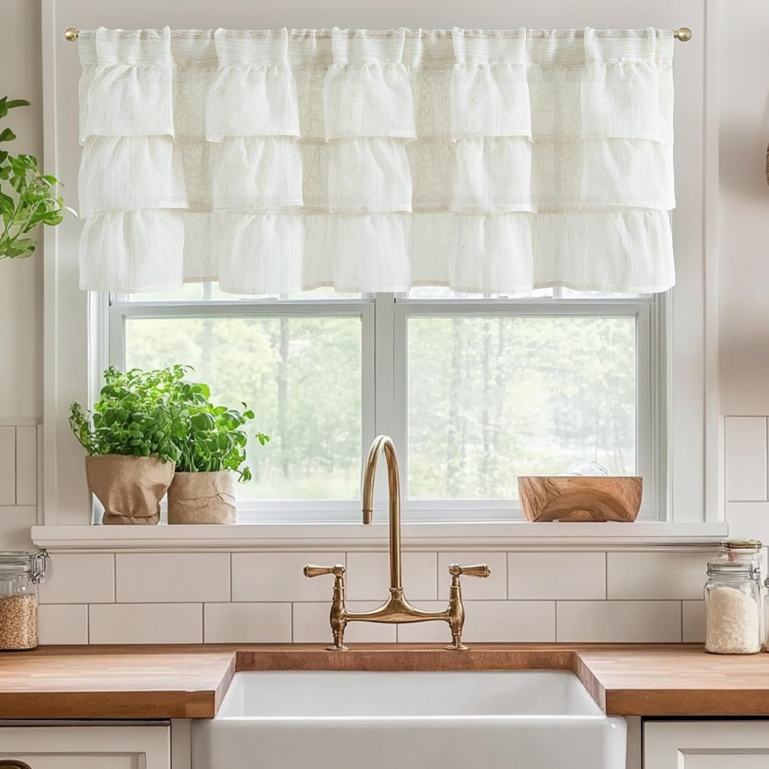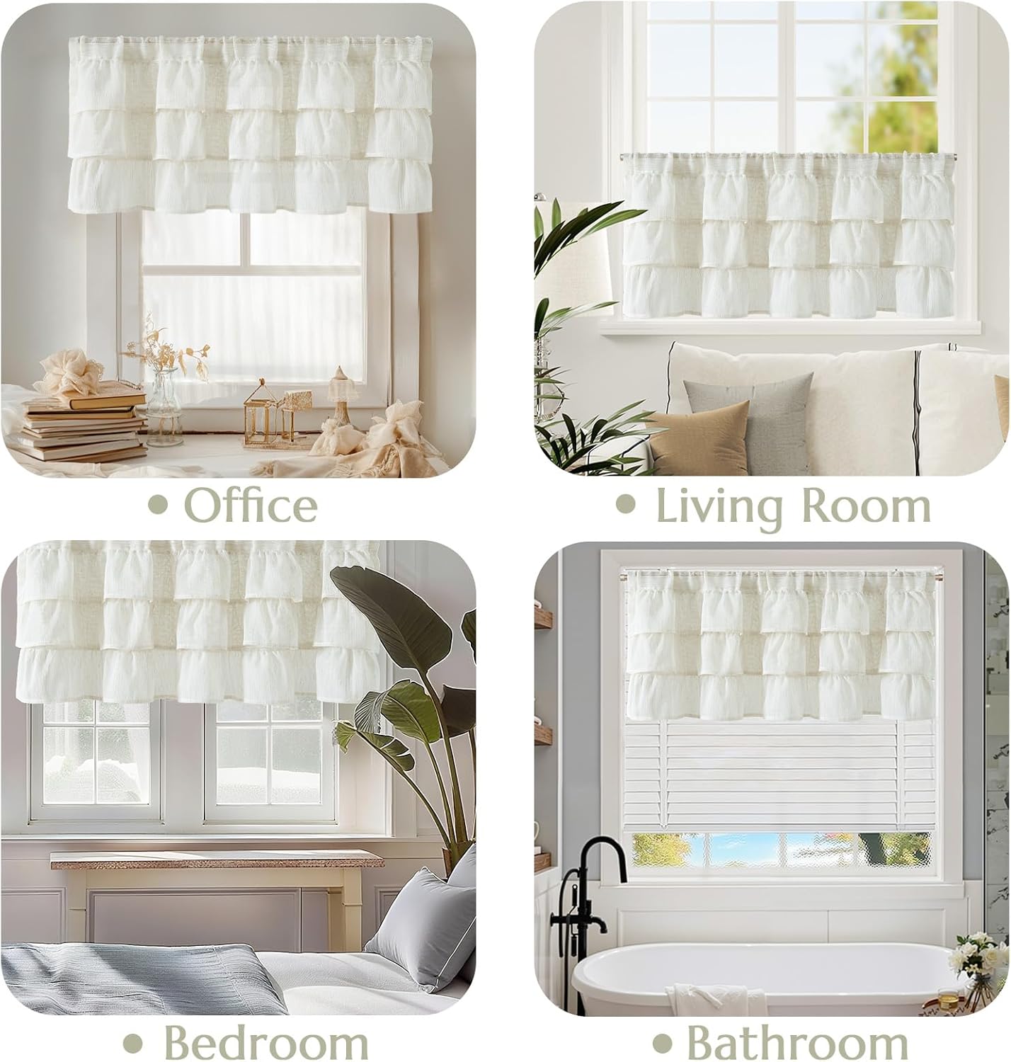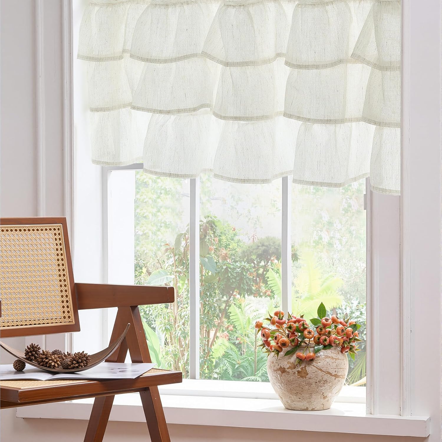 jinchan Ruffled Valance Curtain Slubbed Crossed Kitchen Valance Cottagecore for Living Room Small Windows 18 Inch Farmhouse Voile Sheer Shabbychic Half Window Treatment Rod Pocket 1 Panel Off White