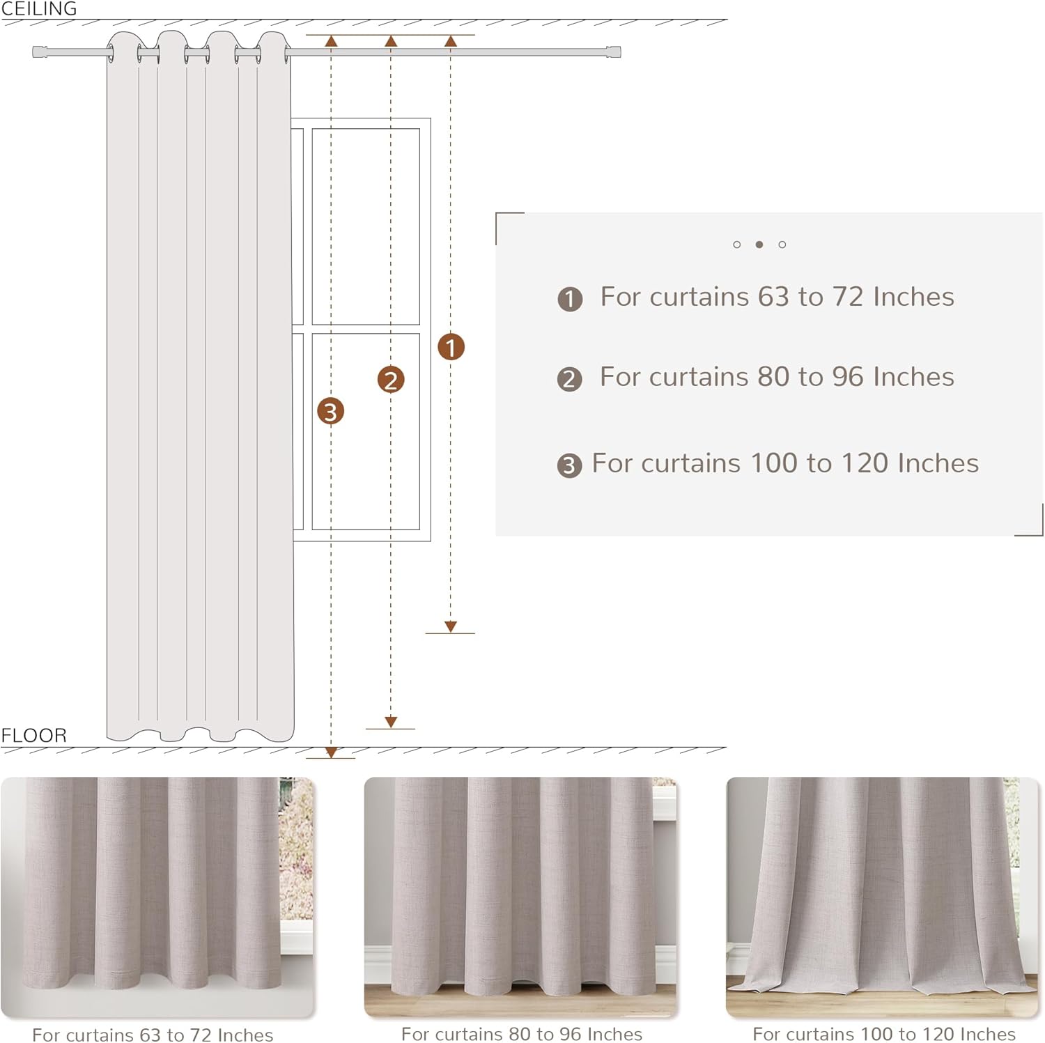 Full Blackout Light Blocking Curtains: Faux linen fabric with full blackout white coating layer on the back,providing a total private and personal space even during the day for a good sleep or rest.Providing an elegant and aesthetic decoration for your bedroom,living room,home,patio,nursey room,home offices,sliding glass door,dining room and laundry room.