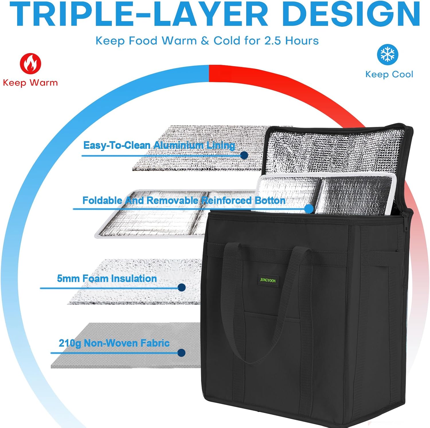 💪Insulated and Foldable: It is designed with three layers of insulating fabric to keep your food warm or cool and remain fresh. It is perfect for frozen foods, produce, or even hot food. Insulated cooler bag can be a substitute for your traditional cooler. It is collapsible and foldable for easy storage and future use.