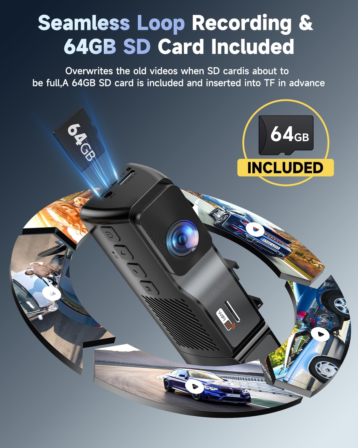 【Dashcam With Seamless Loop Recording & G-sensor Included Free 64GB Card】In order to ensure continuous recording by the dashcam, OVAMAN dashcam comes with Free 64GB card. When the memory is full, the oldest video is automatically overwritten to make room for fresh recordings. Triggered by the G-sensor, the device can automatically detect sudden shakes or collisions and lock the corresponding video files, by preventing them from being overwritten even during loop recording.
