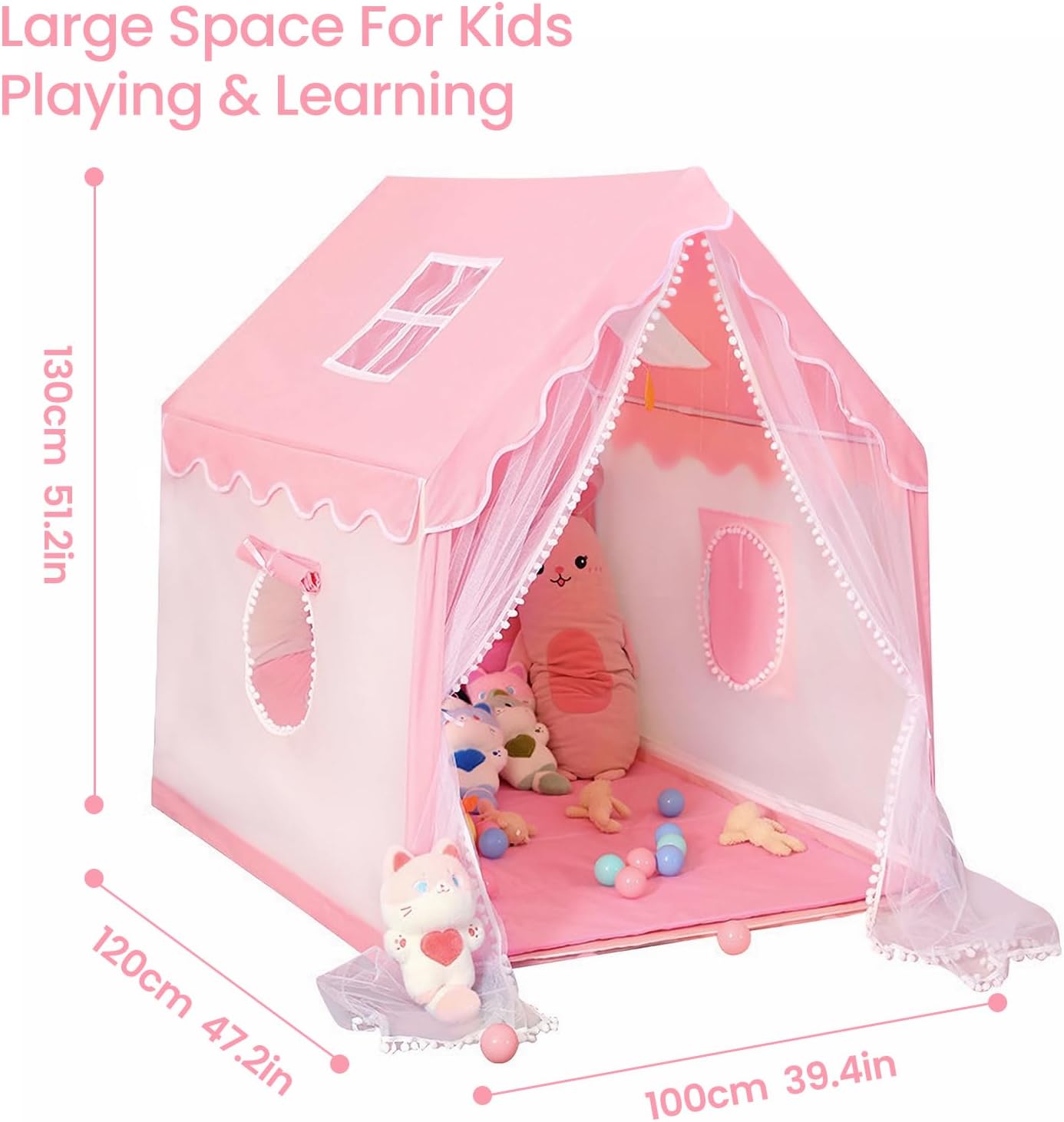 Kids Tent Play Tents for Toddler Children Indoor and Outdoor Large Pink Girls Princess Playhouse Castle with Windows Kids Room Furniture 47″ L × 40″ W × 52″ H