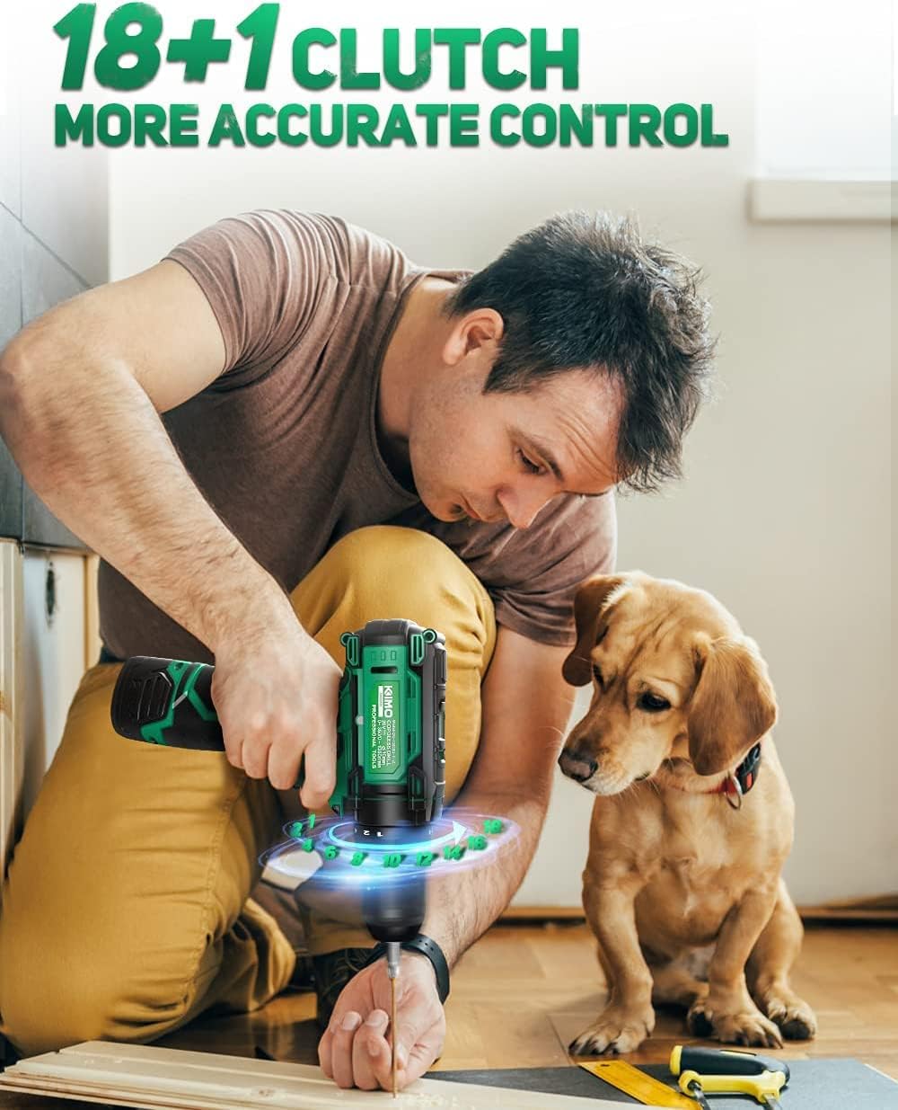 【𝟏𝟖+𝟏 𝐂𝐥𝐮𝐭𝐜𝐡, 𝟐-𝐕𝐚𝐫𝐢𝐚𝐛𝐥𝐞 𝐒𝐩𝐞𝐞𝐝】Equipped with 2 working modes-driving and drilling, KIMO Power Drill is your good partner to work around. 18 adjustable clutch settings with variable pressure trigger(2-speed: 0-350RPM-1350RPM) help complete a wide range of applications precisely. No matter it is household reconstruction, improvements, DIY handcrafts, or auto repairs, consider the KIMO power drill set as you CANNOT MISS everyday fix tool. Also an ideal gift for your mom, wife, girlfriend, daughter.