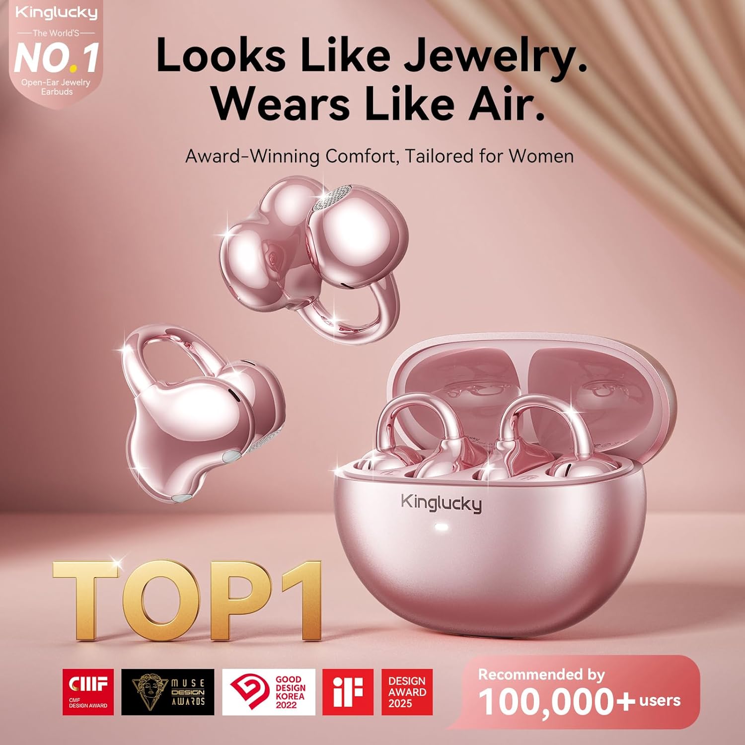 Jewelry-Inspired Clip-On Open-Ear Earbuds. Discover the first clip-on open-ear earbuds that double as jewelry. Kinglucky combines wireless audio with detachable crystal earrings, giving you stylish accessories that function as true open-ear headphones — a unique upgrade for everyday use.