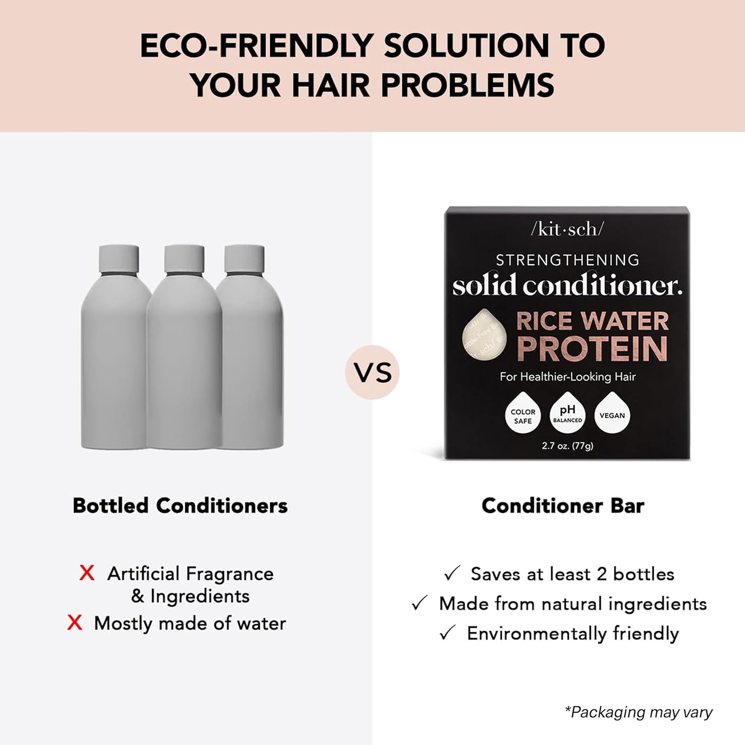 Kitsch Rice Water Shampoo & Conditioner Set – Solid Shampoo & Conditioner Bar with Protein for Hair Growth, Strengthening Hair & Damage Repair – Paraben, Sulfate & Silicone Free – 2 Pack