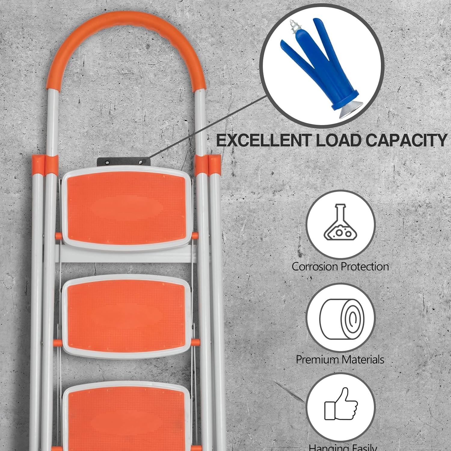 STRONG MATERIAL – All the blue concrete anchors and screws are made of selected materials with premium quality just to ensure the best performance. The Philips screws are made of high-strength carbon steel and finished with galvanizing technology, which is highly resistant to rust and corrosion. The concrete anchors are made of new PE material for higher strength and better resistance to rub and aging.