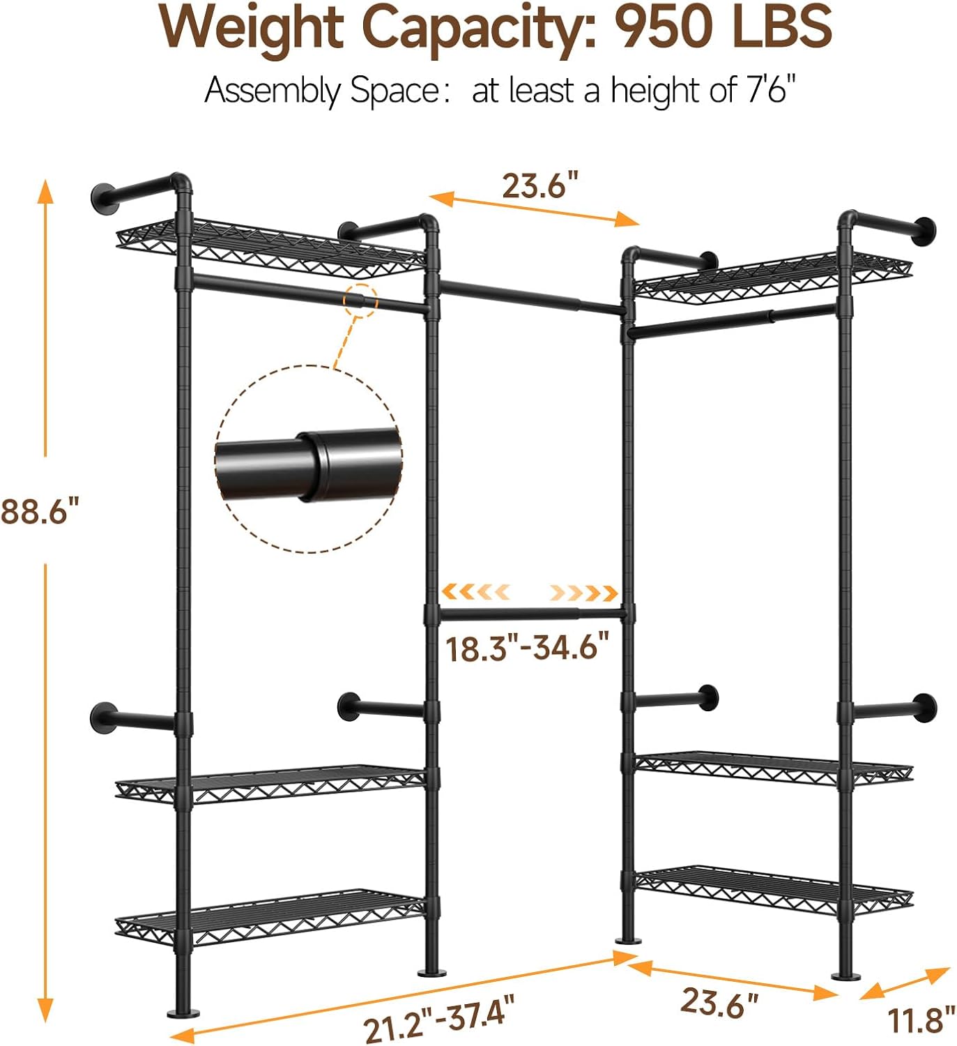 Upgraded Threaded Assembly for Quick Installation: We’ve upgraded the connection to the corner closet system. Poles connect directly via threaded joints, making installation faster and more secure compared to traditional screw-based methods. Save time and effort while enjoying a rock-solid setup