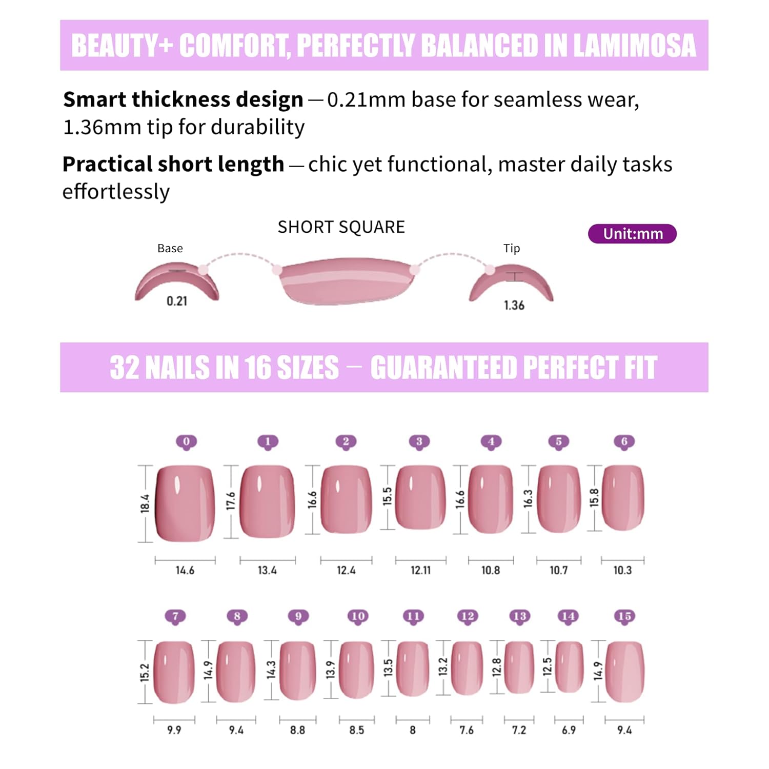 All-in-One Nail Kit for Beginners with Everything – 32 nails in 16 sizes for a perfect fit, extra-strong nail glue for long-lasting hold, plus a nail file, cuticle stick, and prep pad. Get salon-quality nails at home in just 5 minutes!