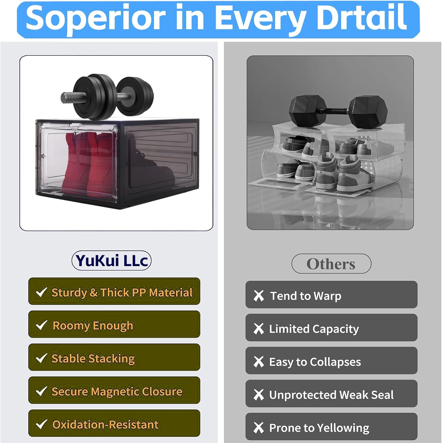 【Premium Stackable Shoe Boxes with Magnetic Door】Crafted from upgrade hard plastic shoe storage, our stackable clear shoe boxes feature reinforced construction on all six sides. This durable organizer provides superior protection and won’t collapse, making it perfect for sneaker storage and collection display.