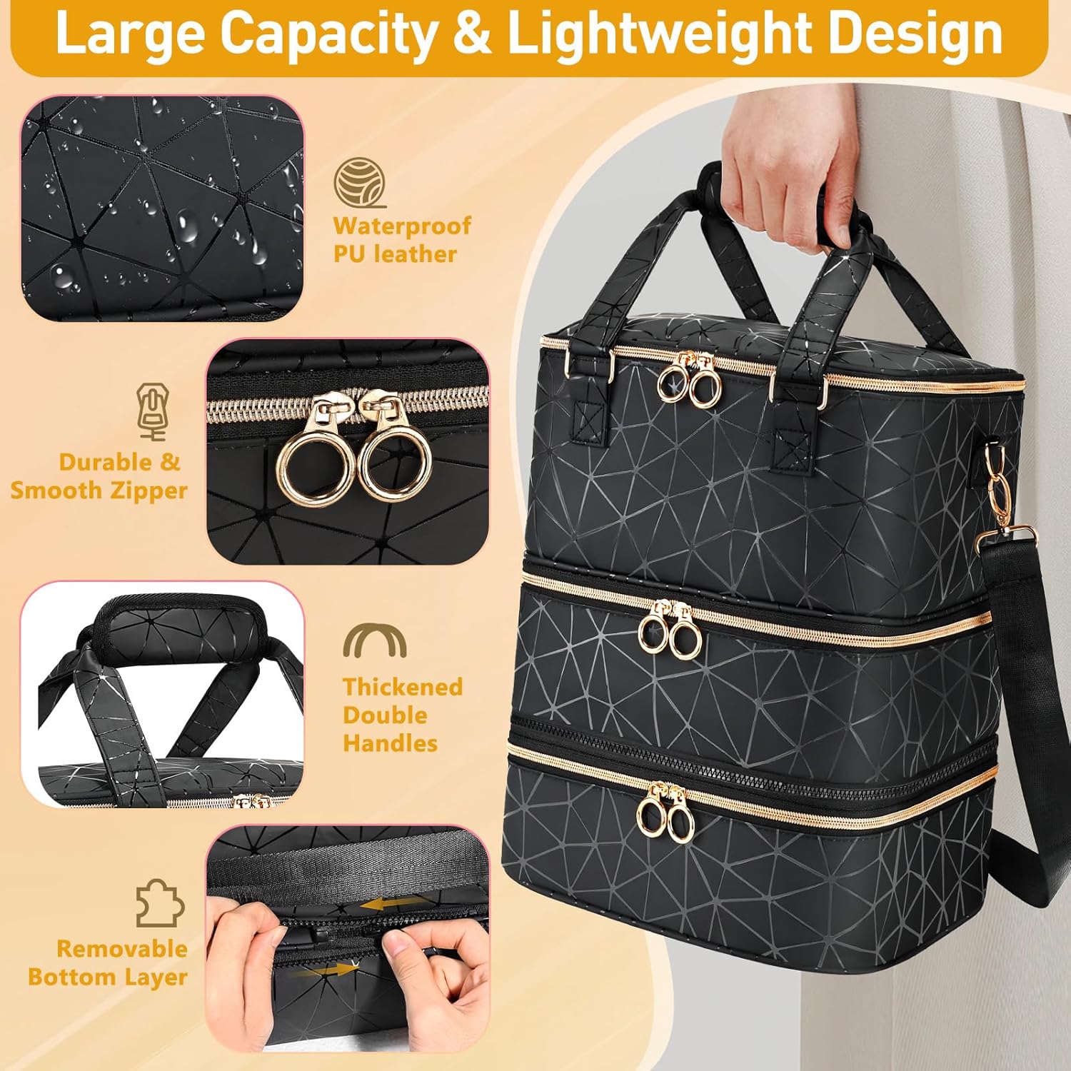 Disassembly Design: Our nail polish bag features a removable three-layer design for ample storage of nail tools and polish. The bottom layer can be detached to convert it into a double layer bag for reduced capacity when needed.