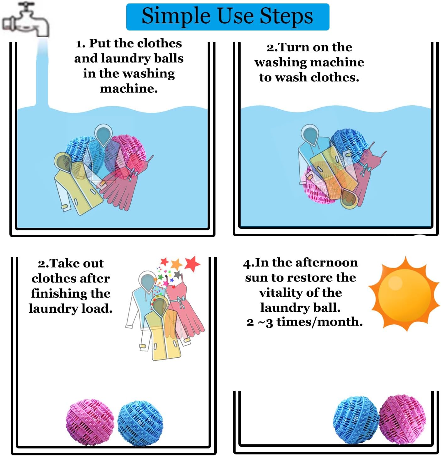 【Long Lasting】: Laundry balls set have mastered detergent free laundry system using natural bioceramics technologylaundry magic ball Reuse for up to two years. Long-term continuous commercialize use up to 1500 times, For over 2000 normal washing times.