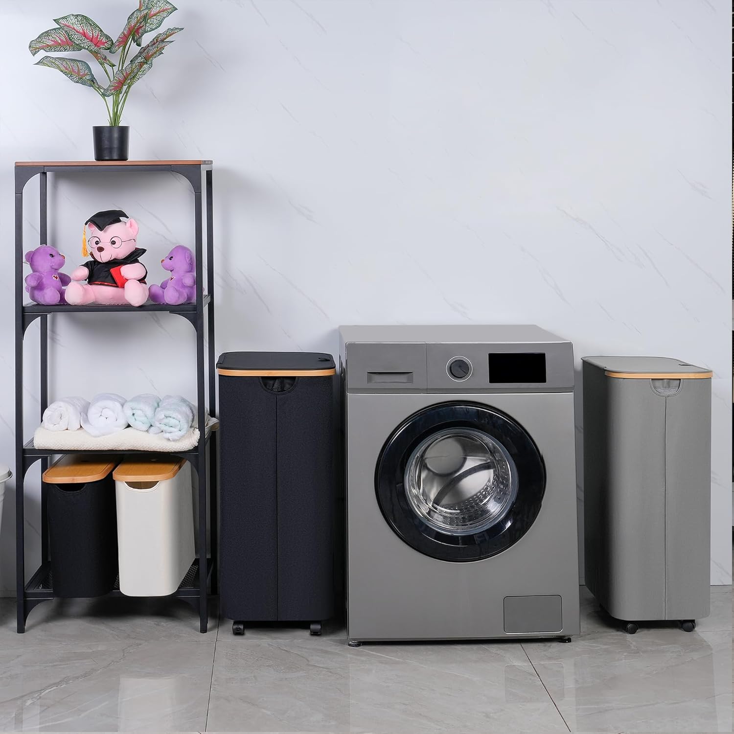 【Smooth Mobility & Removable Inner Bag】Features 4 smooth-rolling wheels for easy movement around the house while maintaining stability. (Don’t need wheels?Simply remove them and immediately turn them into regular laundry baskets!)) Includes a detachable laundry bag for effortless sorting and cleaning.
