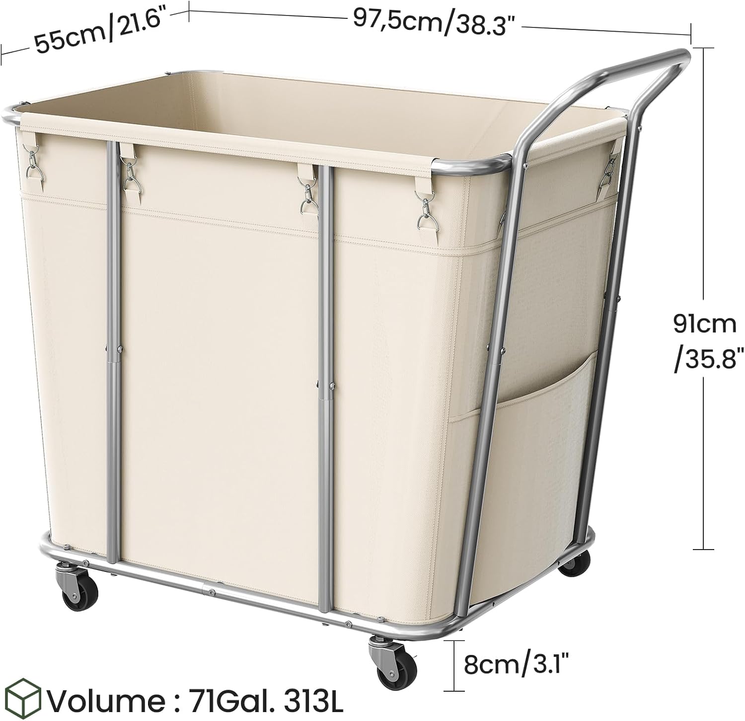 Massive Capacity: With an immense 313L capacity, our laundry cart holds dirty clothes, bedding, or bulky winter wear, simplifying the pre-laundry prep. A thoughtful side pocket facilitates the storage of small items like laundry bags