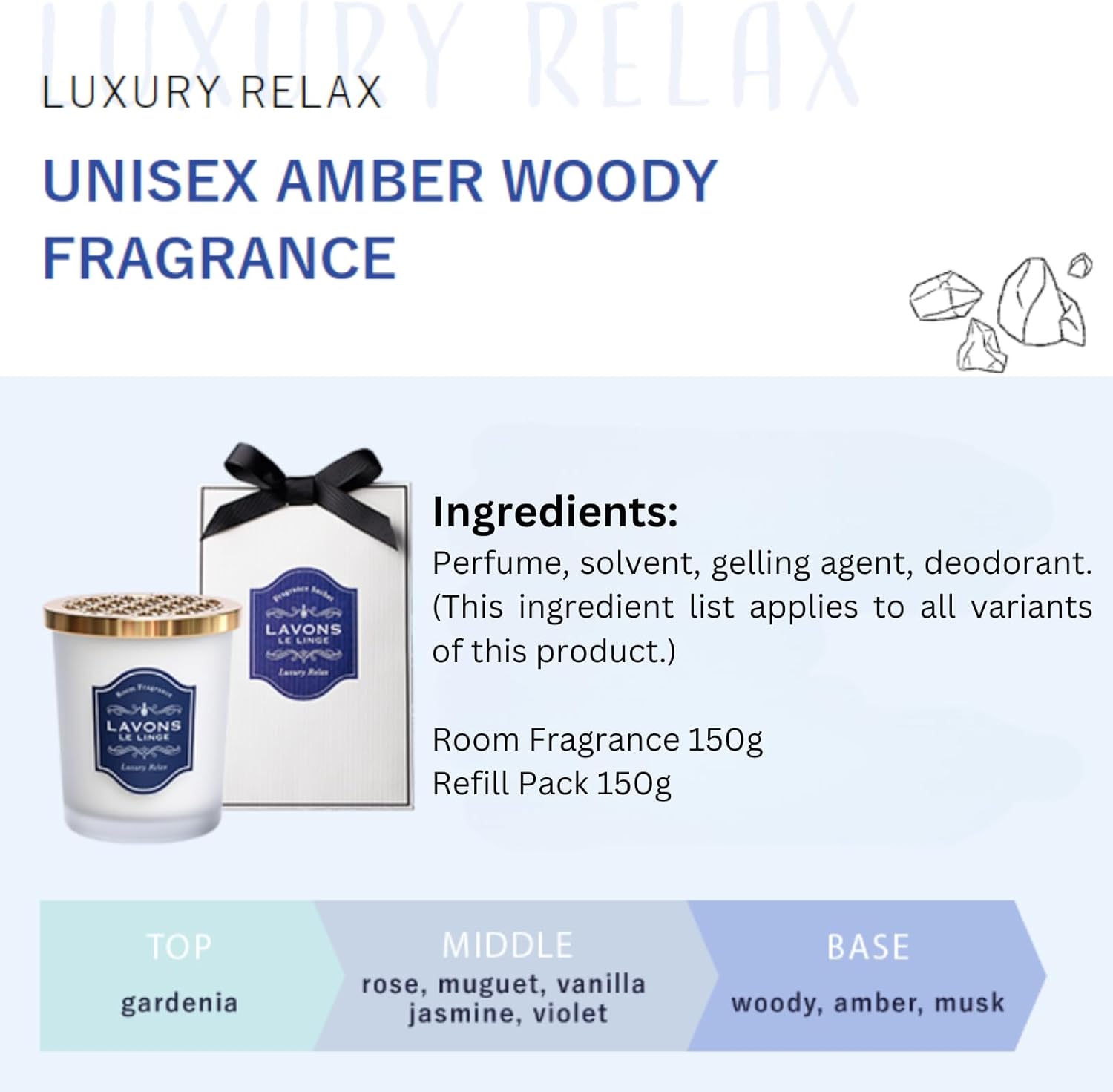 LAVONS Room & Home Fragrance; Air Freshener, Odor Elimintator, Deodorizer for Home, Room, Bathroom & Office, Long-lasting & Made in Japan, 5.3 Oz, Luxury Relax (Gardenia & Wood)