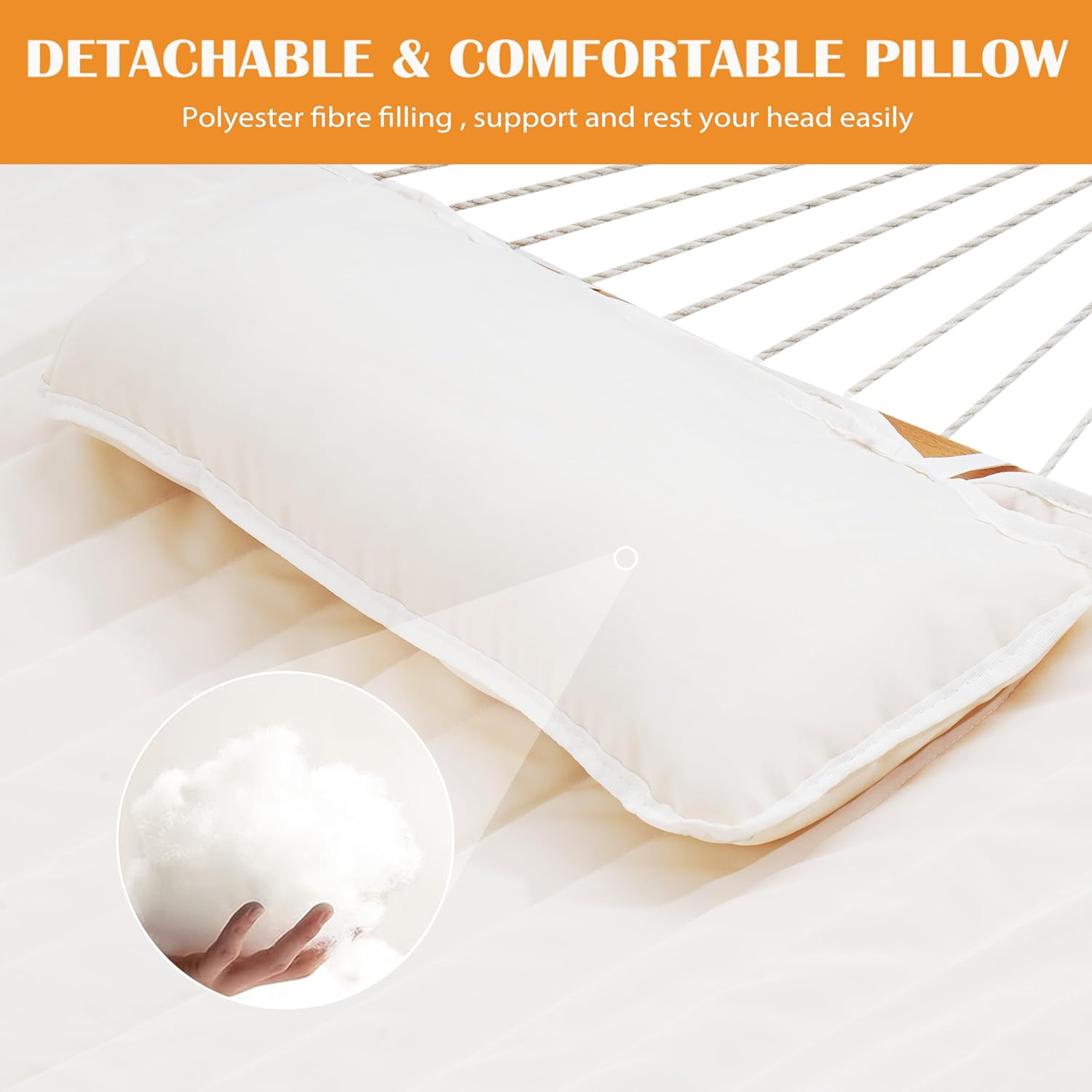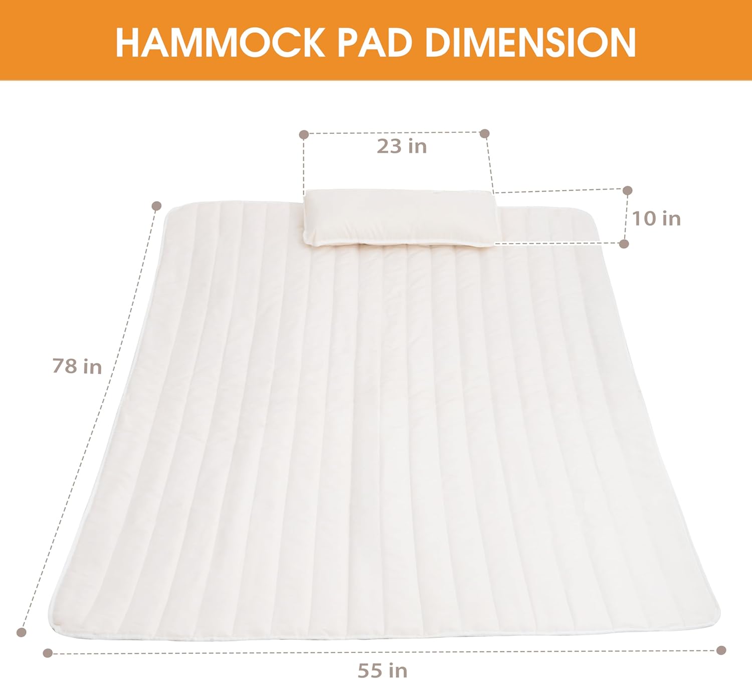 【Universal Size】 The size of 78″ x55″ fits most rope hammock, with a pillow(10″ x23″) for neck support, It is more suitable for camping and outdoor activities.