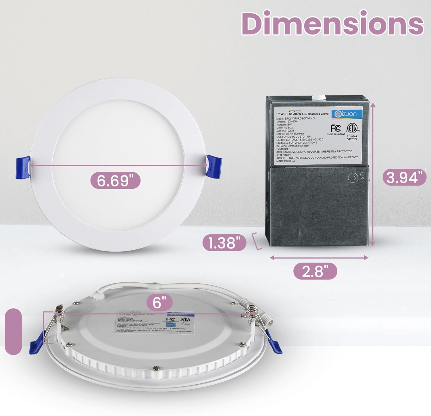 𝗦𝗠𝗔𝗥𝗧 & 𝗘𝗔𝗦𝗬 𝗖𝗢𝗡𝗧𝗥𝗢𝗟: Don’t you wish adjusting your lights was as easy as relaxing on the couch? Oizuon 6 LED recessed light with smart app you can effortlessly change your lighting setup. No more fumbling with switches, just tap, swipe, and enjoy the perfect atmosphere of 6 inch recessed lights with minimal effort.