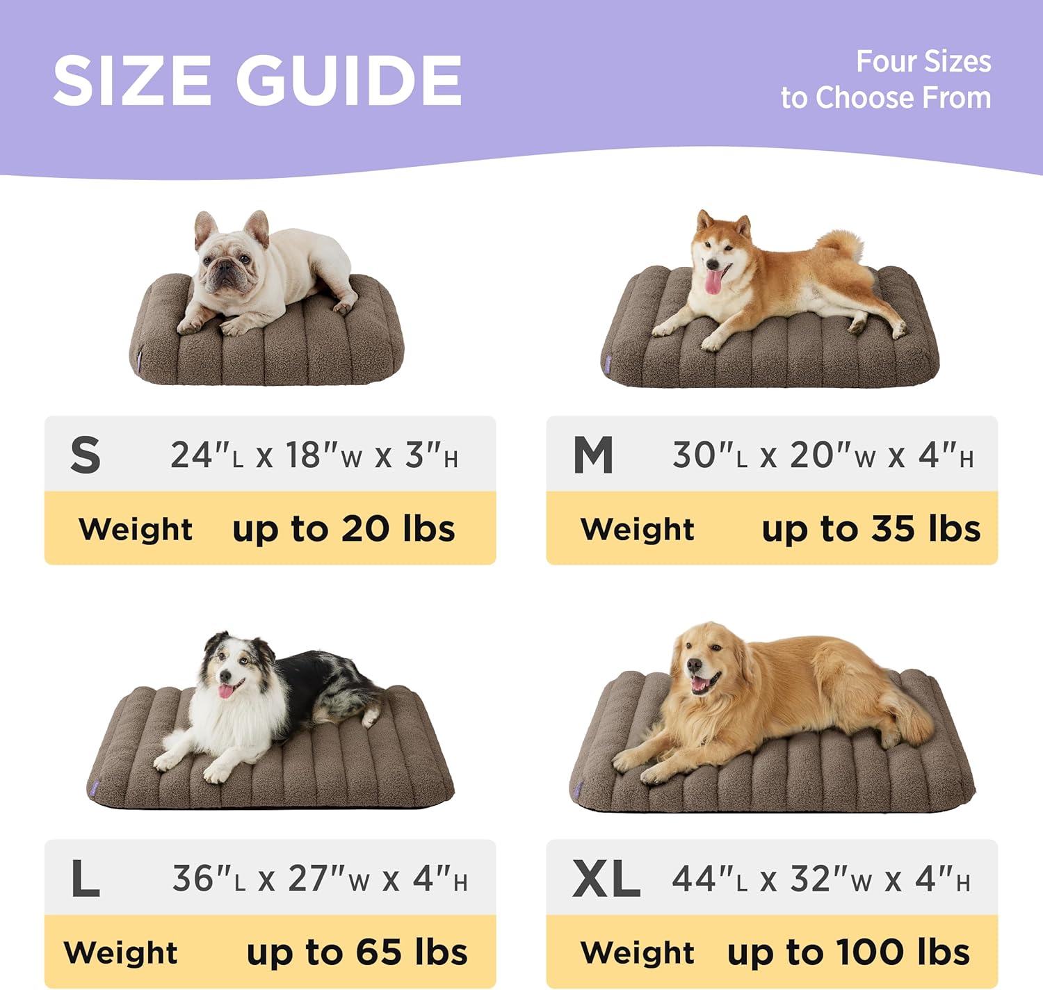 Pet-Perfect Design: Discover the ultimate relaxation for your pet with our Sherpa Plush Mat! Its classic shape melds seamlessly with our signature design, offering ample space for your furry friend to stretch and snooze in style. Perfect for any home decor, it’s a breeze to move around, making it a cozy spot for your pet indoors, outdoors, in a crate, or during travel adventures.