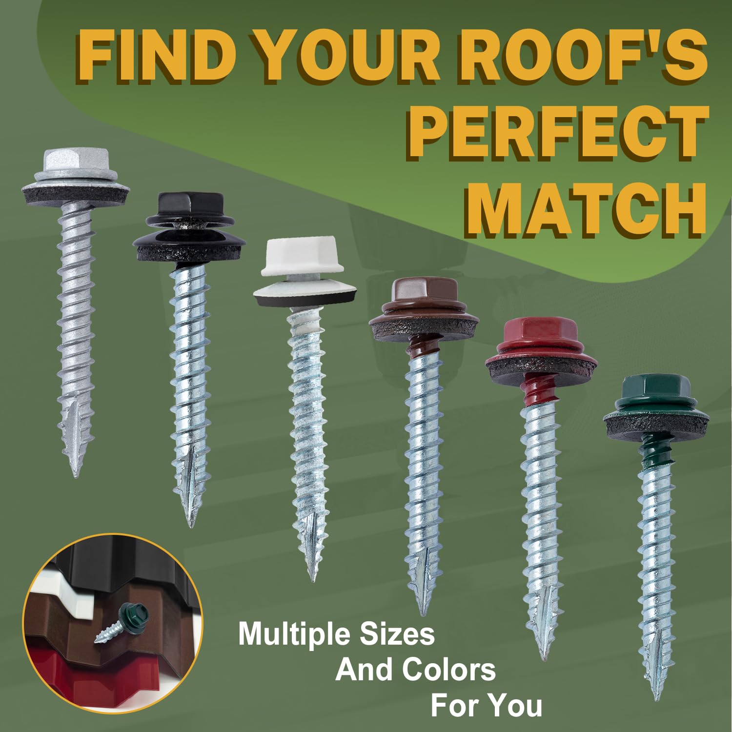 LEAK-PROOF EPDM WASHER: Roofing screws with EPDM rubber washer have well performance in sealing, preventing roof leaks during heavy rain and snow, offering a strong seal and resistance to moisture and chemicals