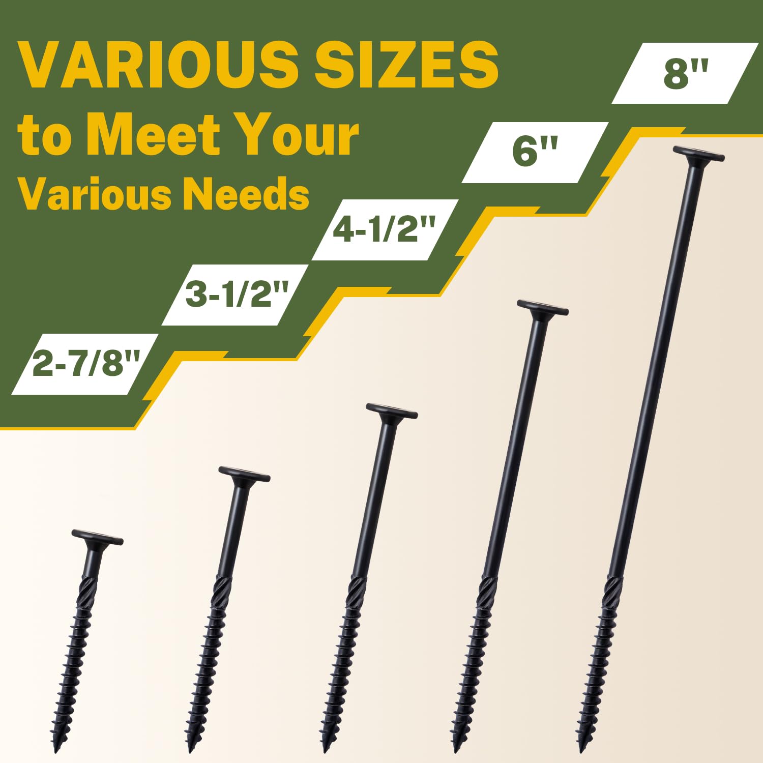 INDUSTRIAL-GRADE DURABILITY: Crafted from carbon steel, LIONMAX wood screws withstand heavy loads and resist bending or shearing, ensuring rock-solid stability in wood structures like decks, sheds, or outdoor furniture