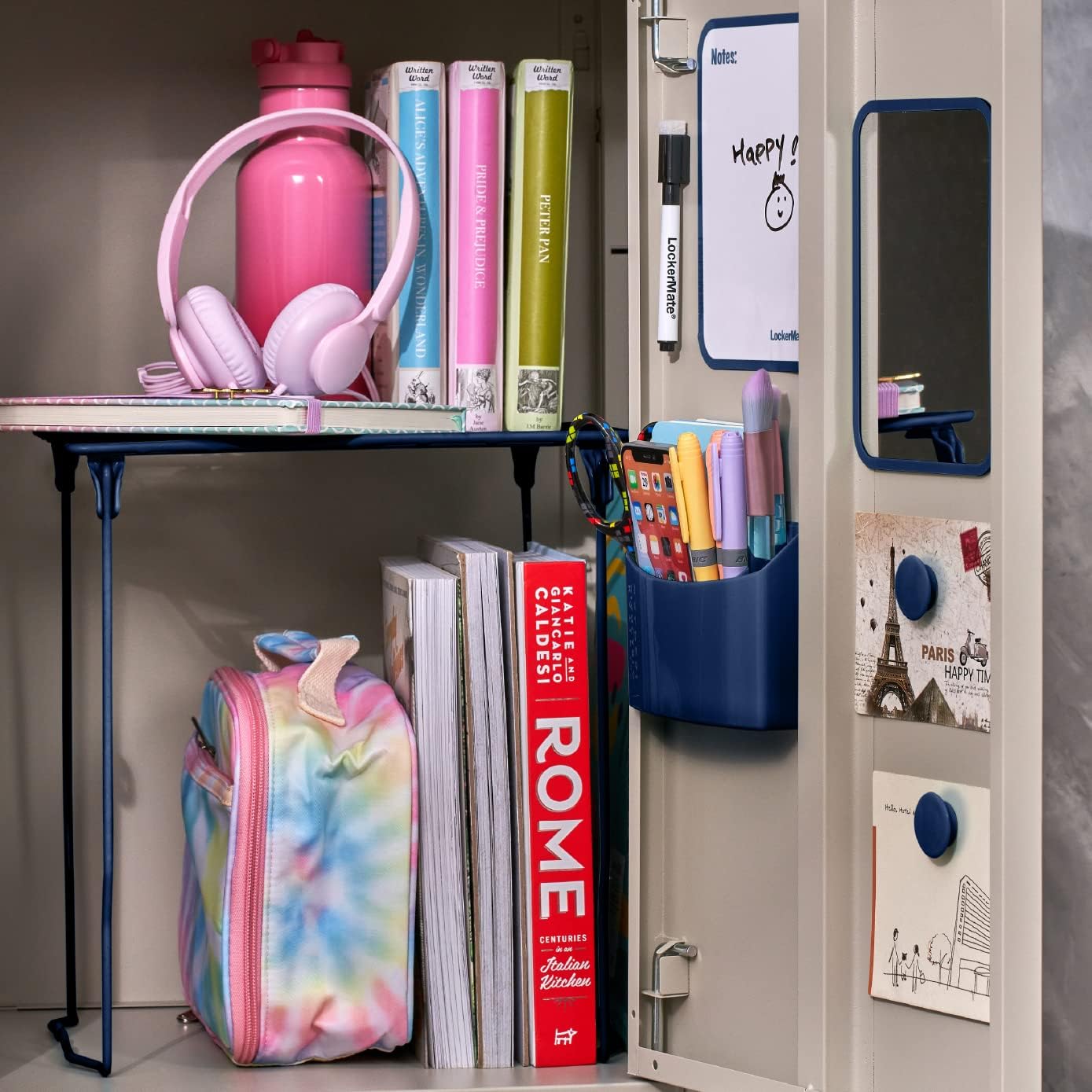 Be the first to review “LockerMate 7-Piece Locker Organizer Kit, Includes Locker Shelf, Mirror, Whiteboard, Storage Cup & Dry Erase Marker, Blue”