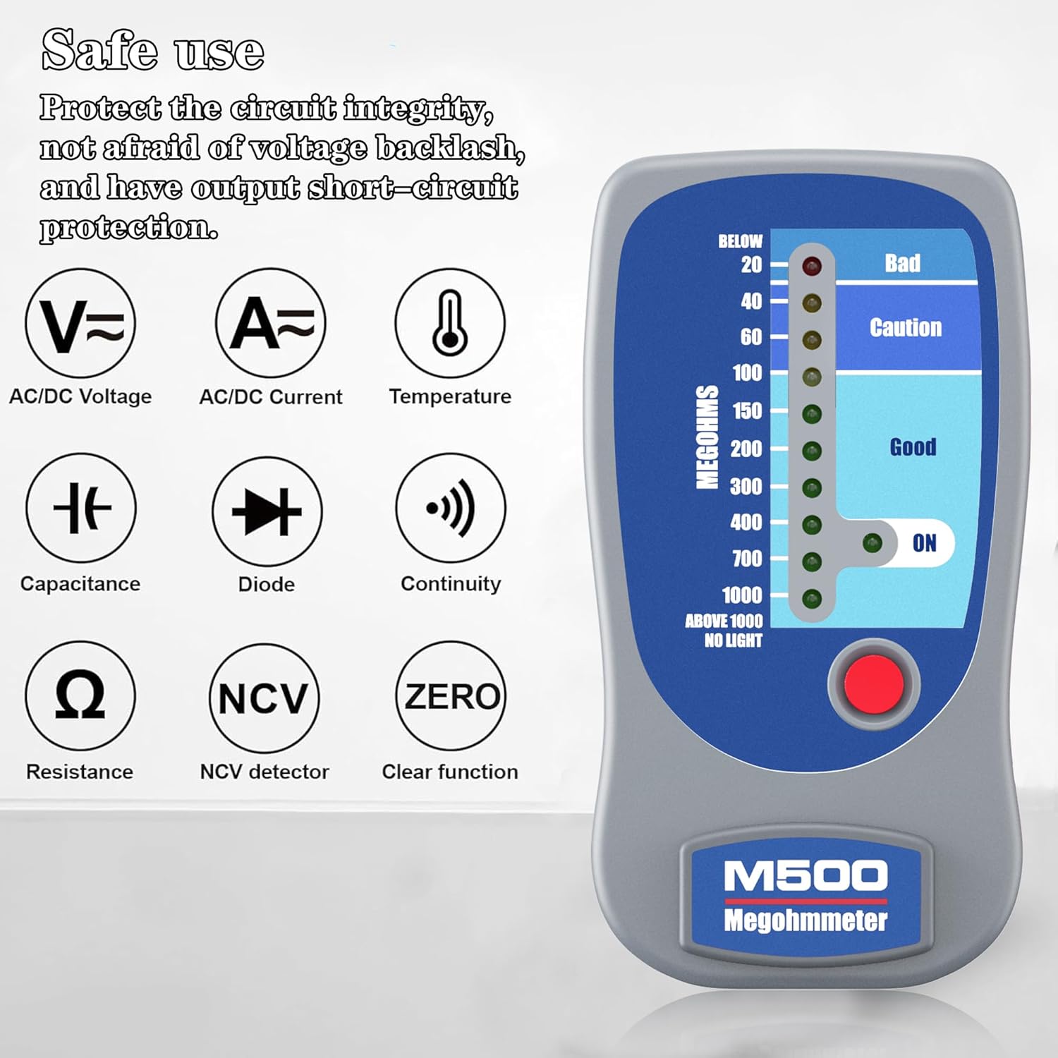 M500 Megohmmeter for Insulation Testing,Compatible with Supco M500 Electronic Megohmmeter,Works for Motors,HVAC Systems Tools, Compressor Tester,1000 Megohms at 500 Volts