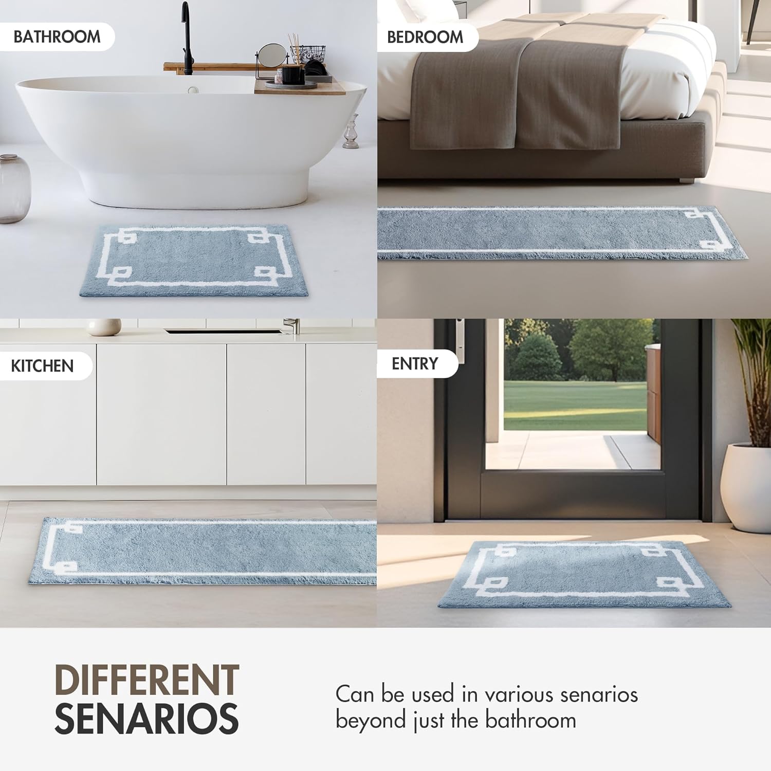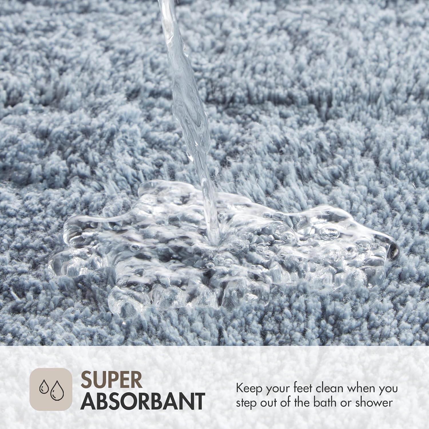 The plush medium pile weight ensures pure soft comfort for your feet, with high absorbency and a cool, striking contrast white border design for a clean hotel look right in your own home