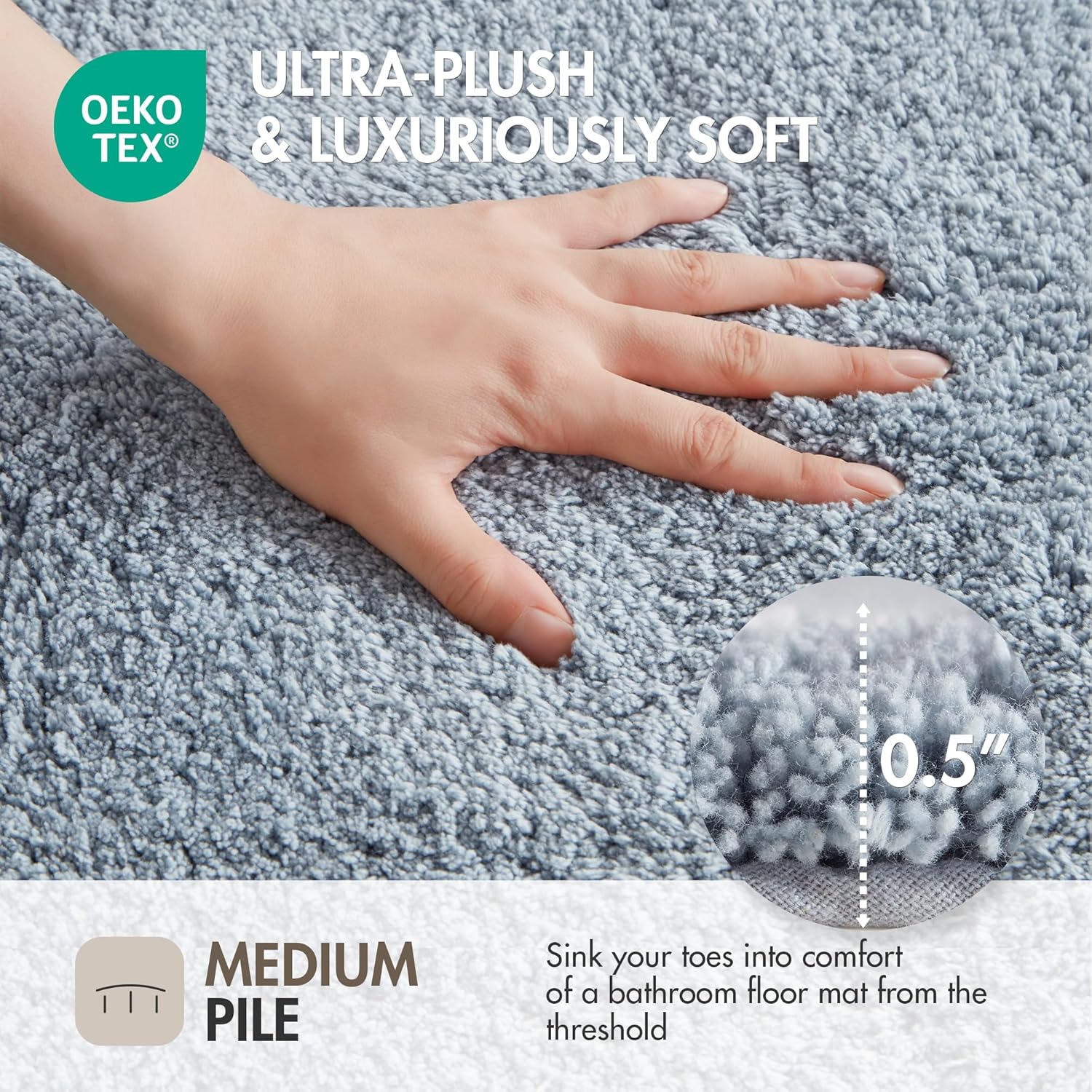 Premium shower rug that is Oeko-Tex certified to be free of any chemicals and harmful substance. And the non-skid latex backing helps keep the rug in place for better safety